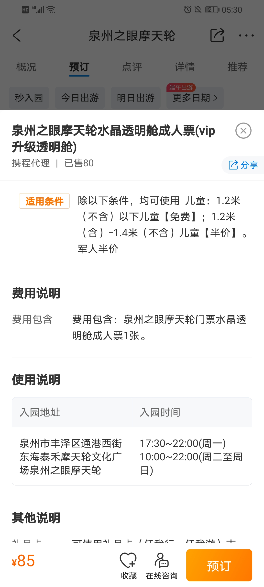 泉州之眼摩天轮,身高1.2米以下儿童,可以乘坐水晶透明舱,免费乘坐。