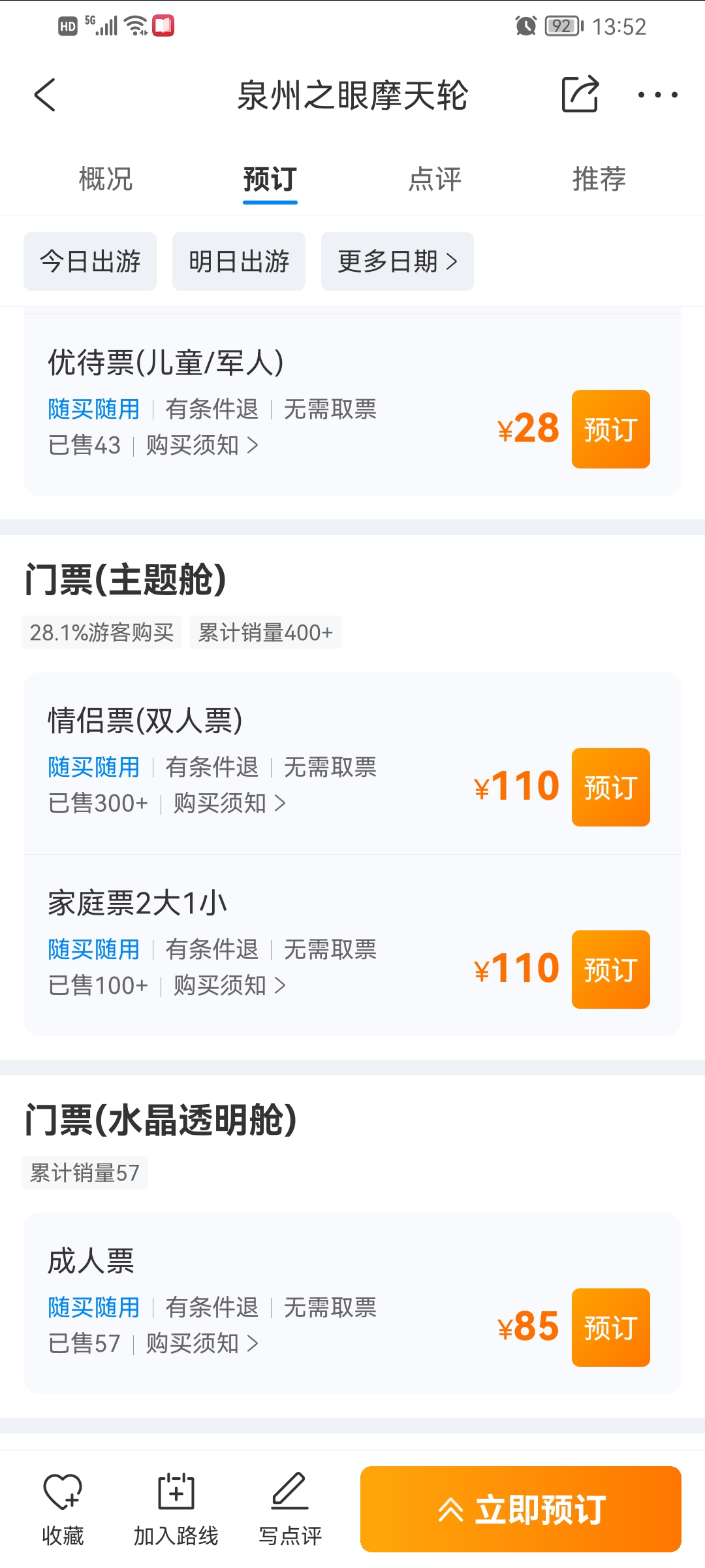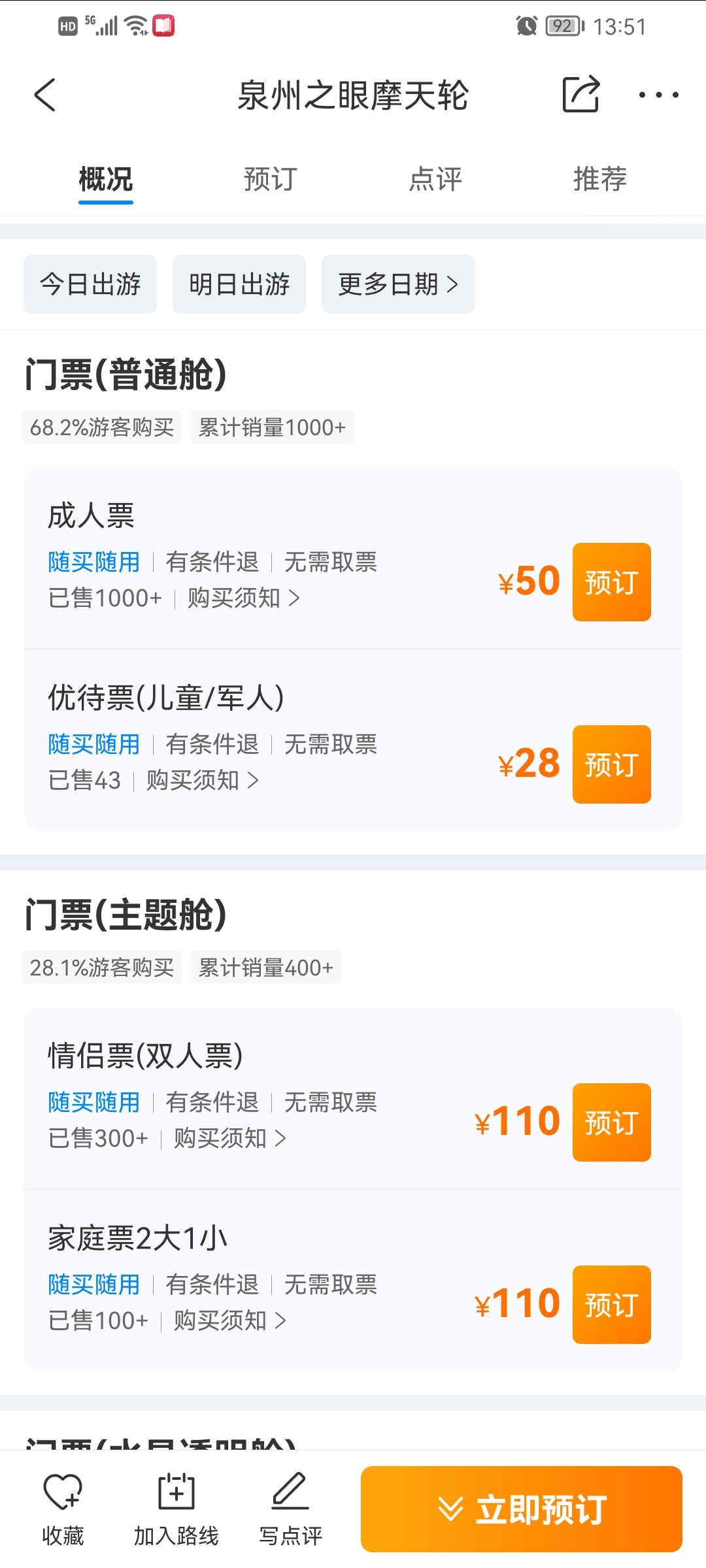 从观景和性价比,建议在携程APP上购买普通舱门票,优惠便捷。