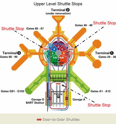 2.旧金山机场比较大,有三个航站楼,你需要确认下一航班登机口的位置。