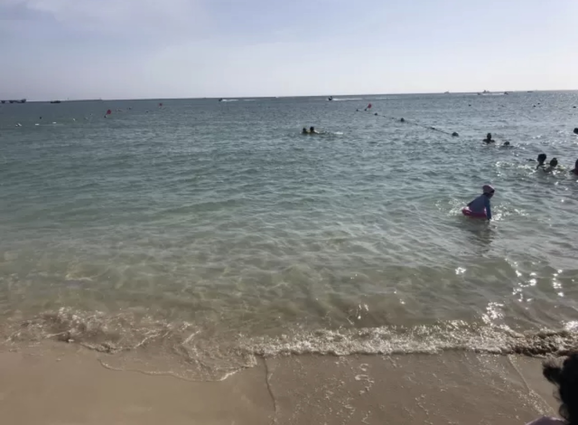 大东海 是 三亚 最早被开发的热带滨海度假区,也是离市区最近的海湾。这里的沙滩和海水质量比 亚龙湾 逊色,但比 三亚湾 要好很多,能见度很高,来这里晒日光浴的人较多。这里的公共游泳区域可以租赁救生圈、遮阳伞、躺椅等设施,冲 淡水 和柜子租赁单独收费。我和莹莹刚在一个躺椅上坐下,就有人过来收费,说两个躺椅50元,包全天,好吧,不做我们也没地去,总不能坐在沙滩上暴晒一下午吧,只能乖乖交钱。