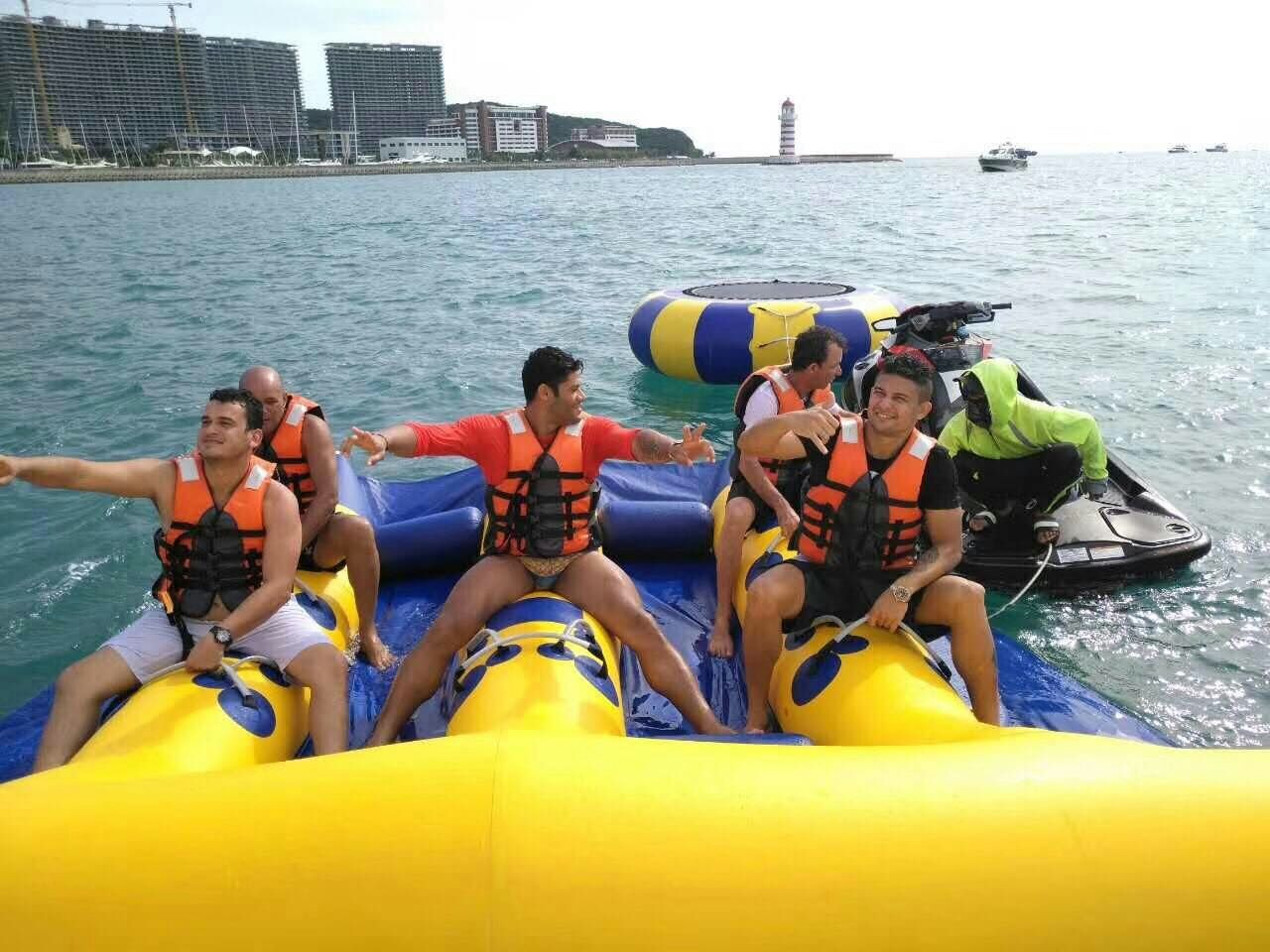 如果喜欢玩水上项目,去蜈支洲岛可以选择全岛项目一家全包,这个还算挺合适的,看一下项目,记得要挑价格贵的项目先玩。