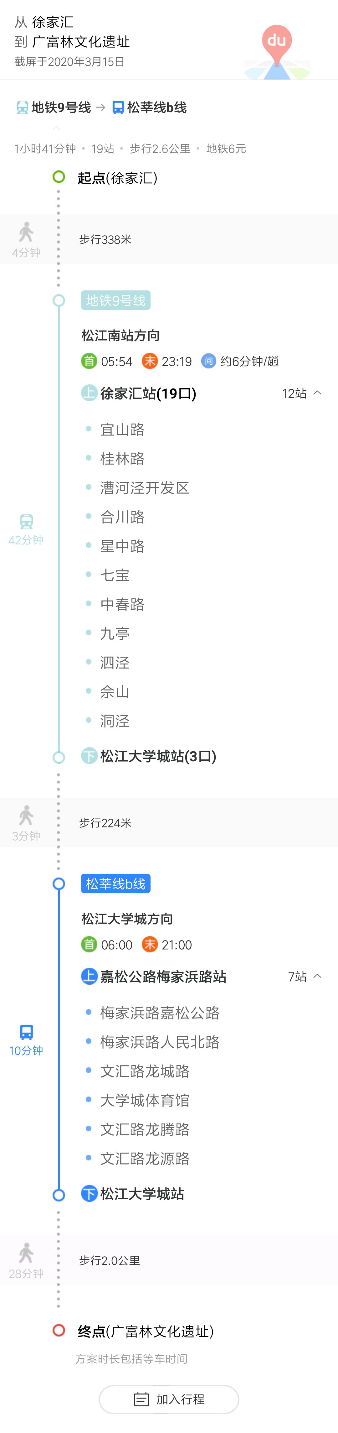 2、嘉松公路梅家浜路站 上车 松莘线b线 末班发车21:00 7站