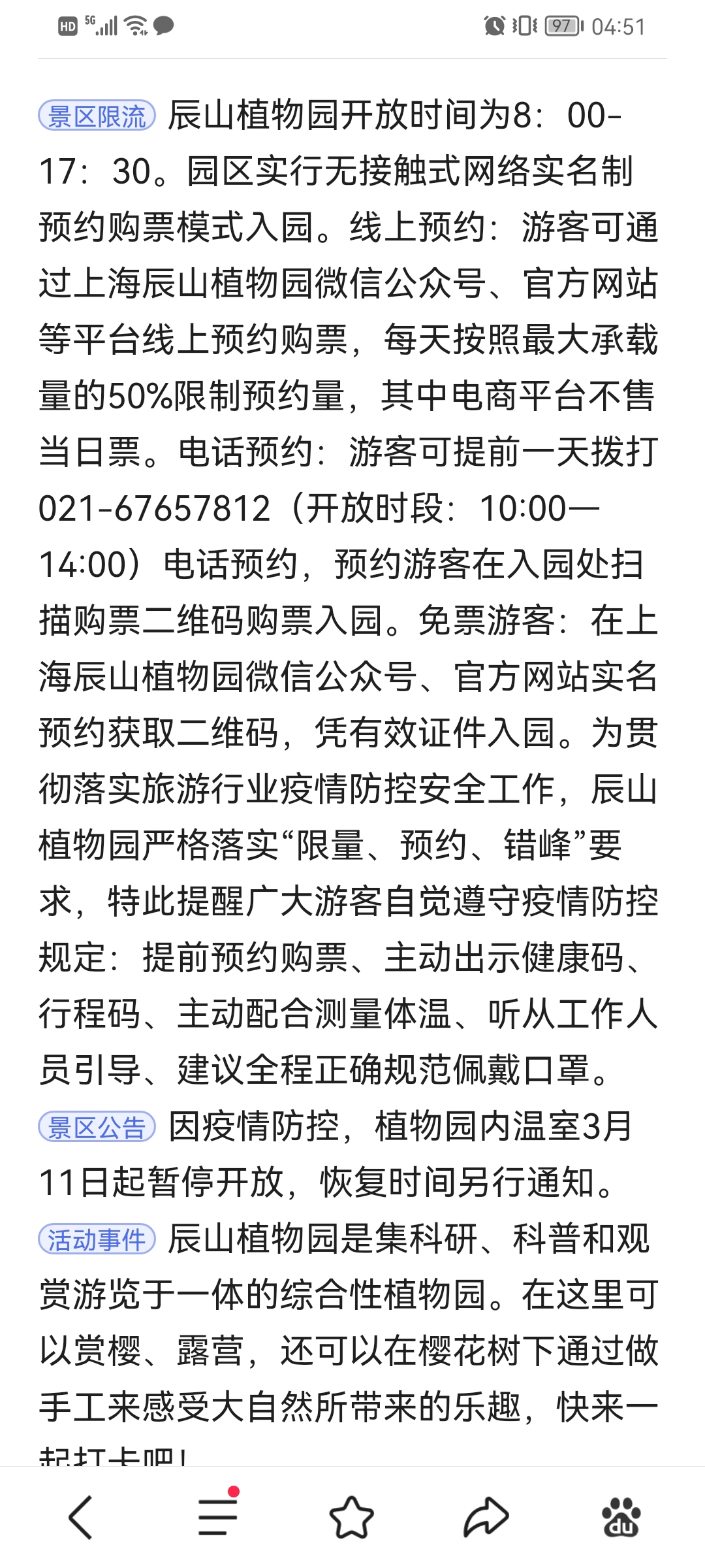 为防控疫情,上海辰山植物园的购票方式进行了调整,详细见图。