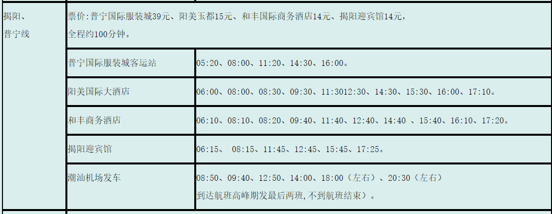 你好,揭阳潮汕机场到汕头的机场大巴分东线和西线