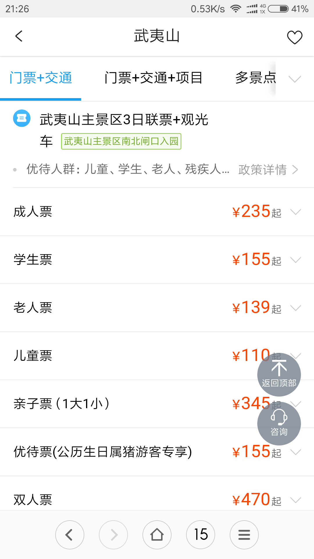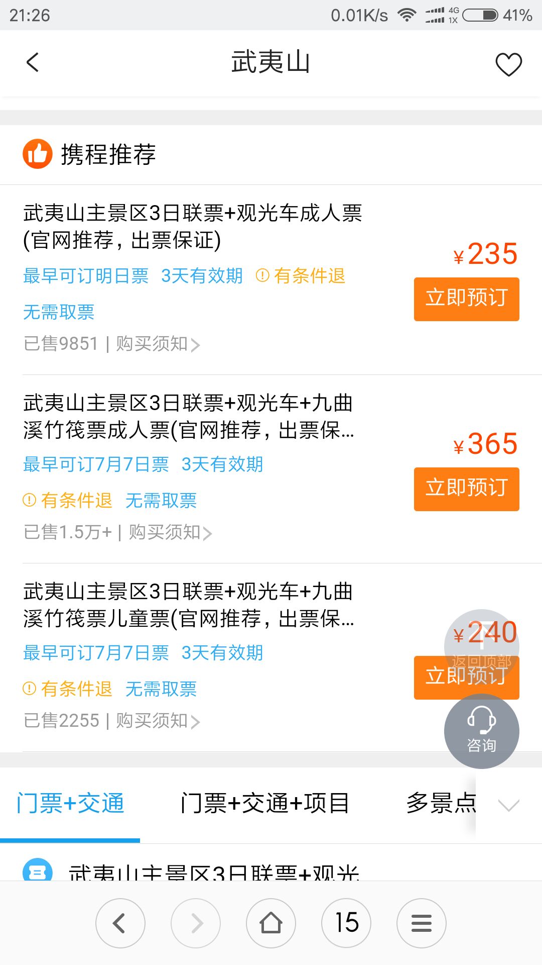 武夷山很大,里面有天游峰、大红袍、一线天等七八个收费景区。漂流只是漂流的钱,进入另外的景区才买相应的票,也可以考虑买几个景点联票,应该是三天之内有效的,会优惠一些。
