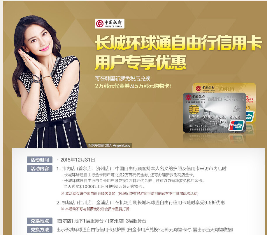 中国银行环球通是可以兑换2万韩元代金券,并免费办理免税店金卡