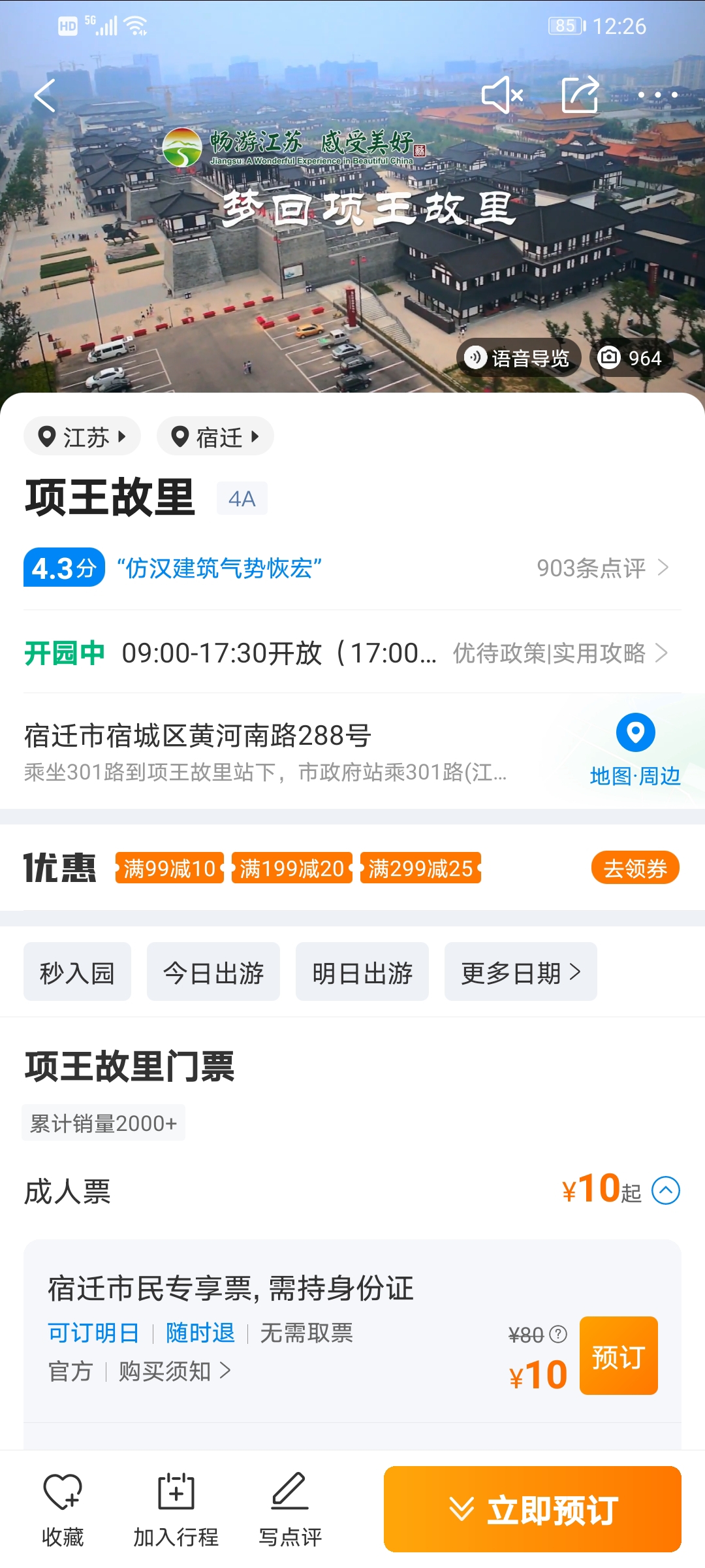 - [4小时前] 旅游景区** 发表了江苏资讯 宿迁必打卡|项王故里带你梦回西楚霸王时代🏰✨