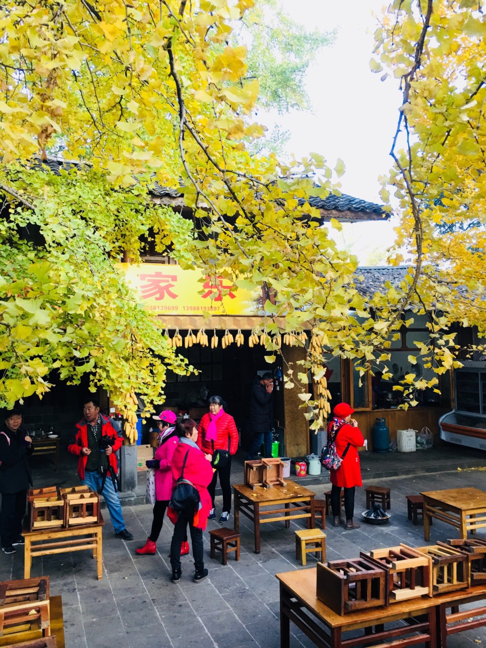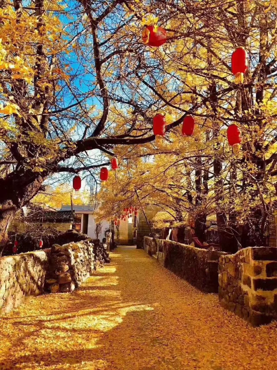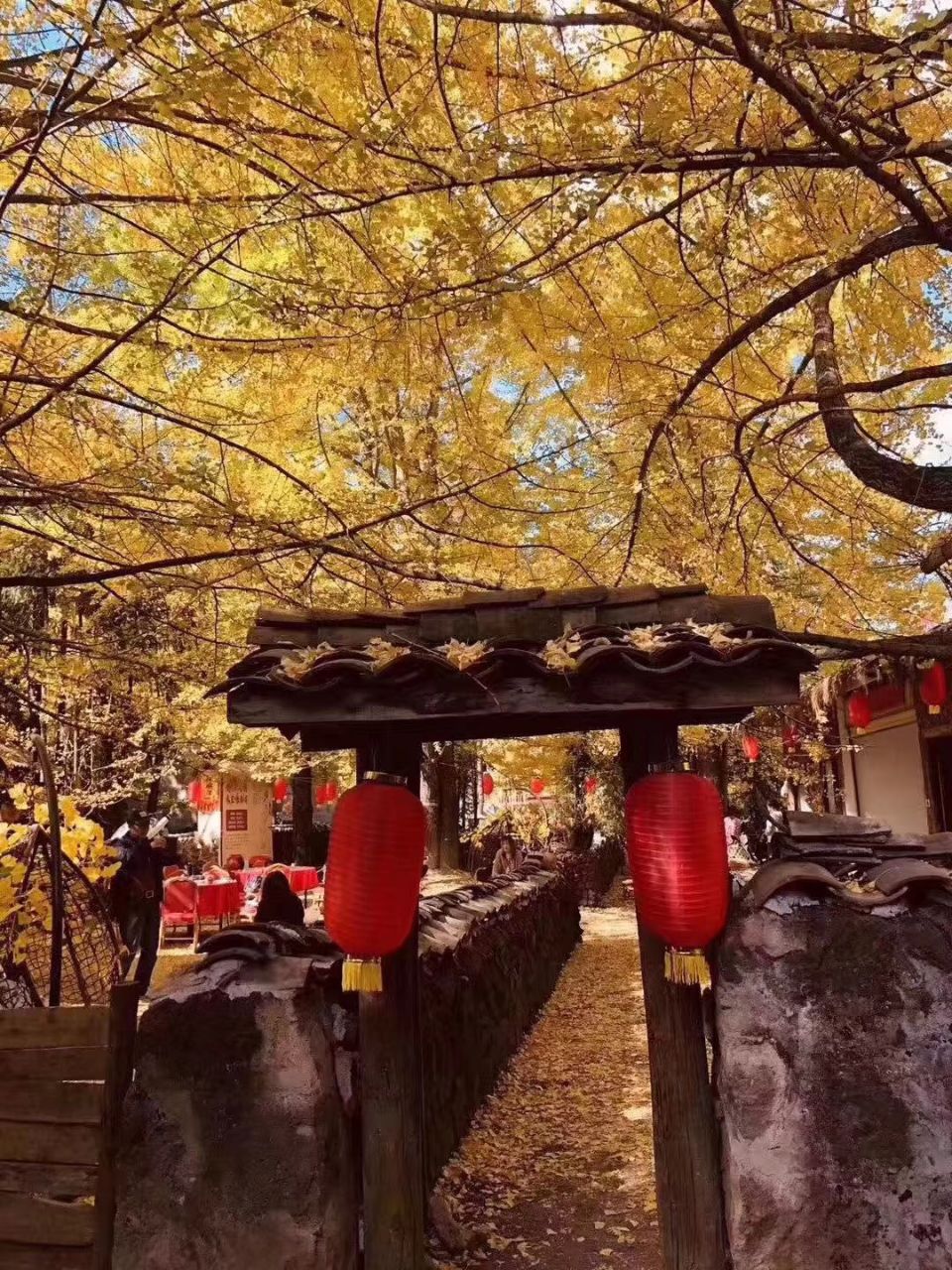 最佳观赏期应在11月下旬。我们是11月21日、22日在那里游玩两天,放眼望去,满目金黄,甚是振撼,满村尽披黄金甲。只是个别老树落叶了,颇有沧桑感。值得一去。