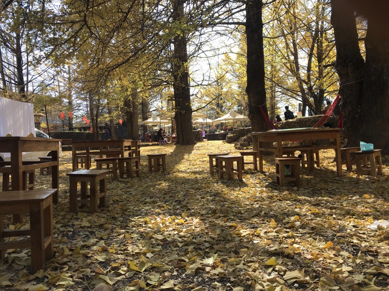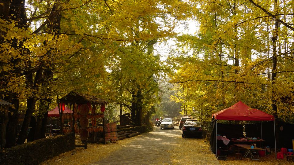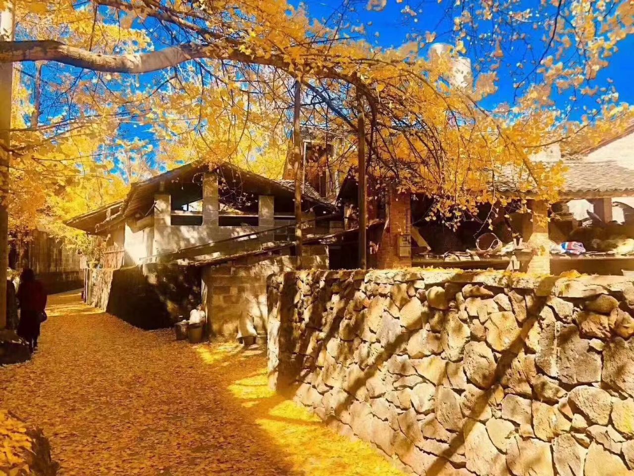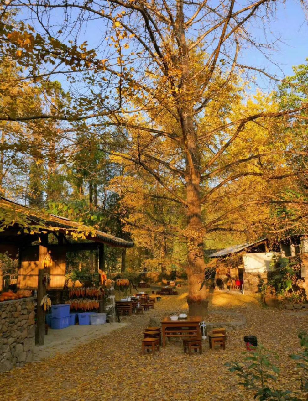 最佳观赏期应在11月下旬。我们是11月21日、22日在那里游玩两天,放眼望去,满目金黄,甚是振撼,满村尽披黄金甲。只是个别老树落叶了,颇有沧桑感。值得一去。