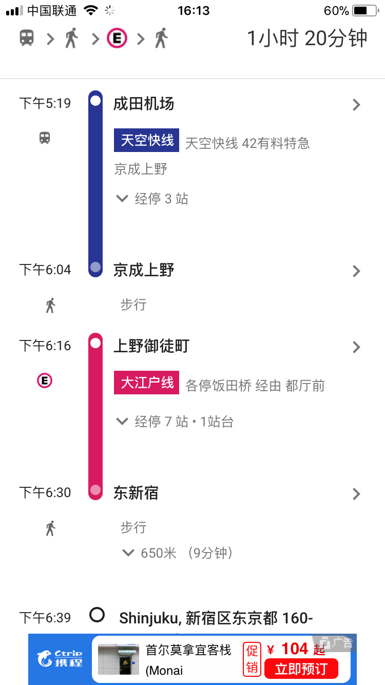 2.京成電鐵和skyliner都只到上野京成地鐵站 再轉大江戶線到新宿