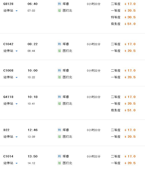 珲春去图们的火车和汽车都很多,火车快一点,二十多分钟,车次详见图片。欢迎点一下绿色的“采纳为最佳答案”,谢了