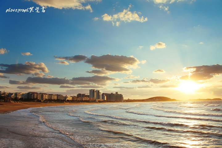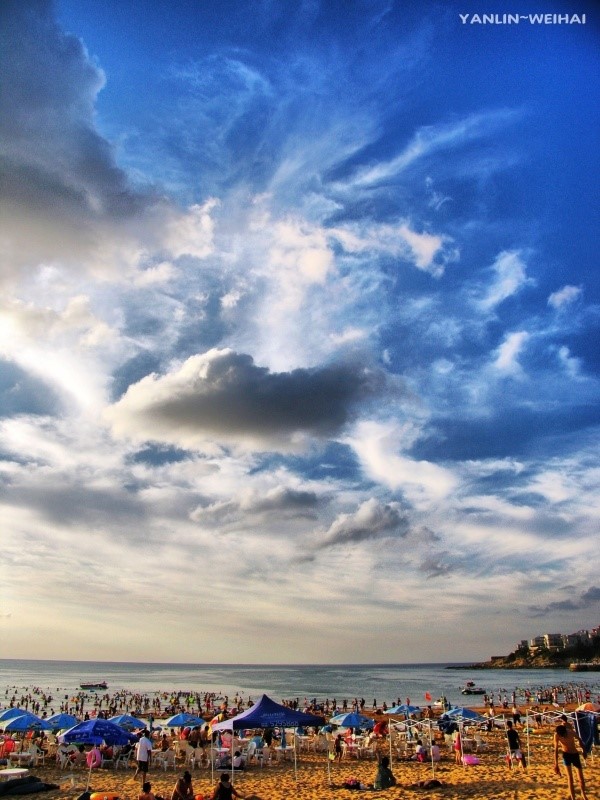 威海国际海水浴场:走在沙滩上,感觉很细腻,孩子们可以尽情地掏沙、欢快地踏浪,或许爬上游艇,纵横碧波;这就是威海国际海水浴场,平缓的海边沙坡,海水清澈无比,开放的超大海水浴场,可以或吃海鲜,或观海浪,也或带上泳圈,游泳戏水.