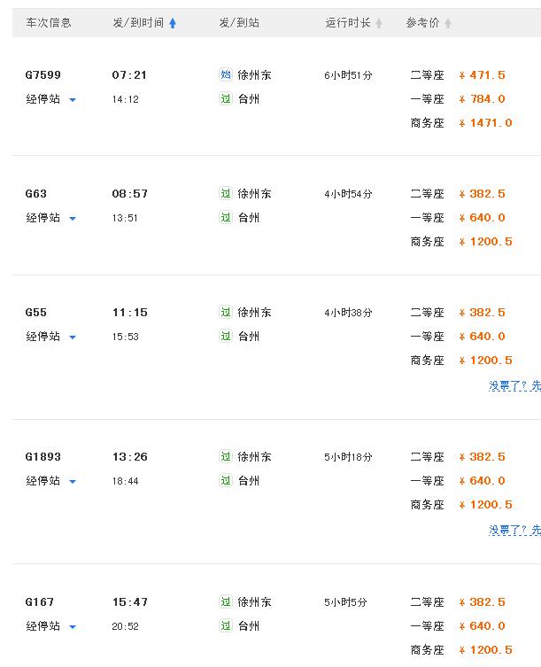 2.如果你是早上出发,那么我建议你到杭州中转一下,那样会多很多车次—— 注意不要选择4个多小时的那两趟,要绕行上海,时间长票价高