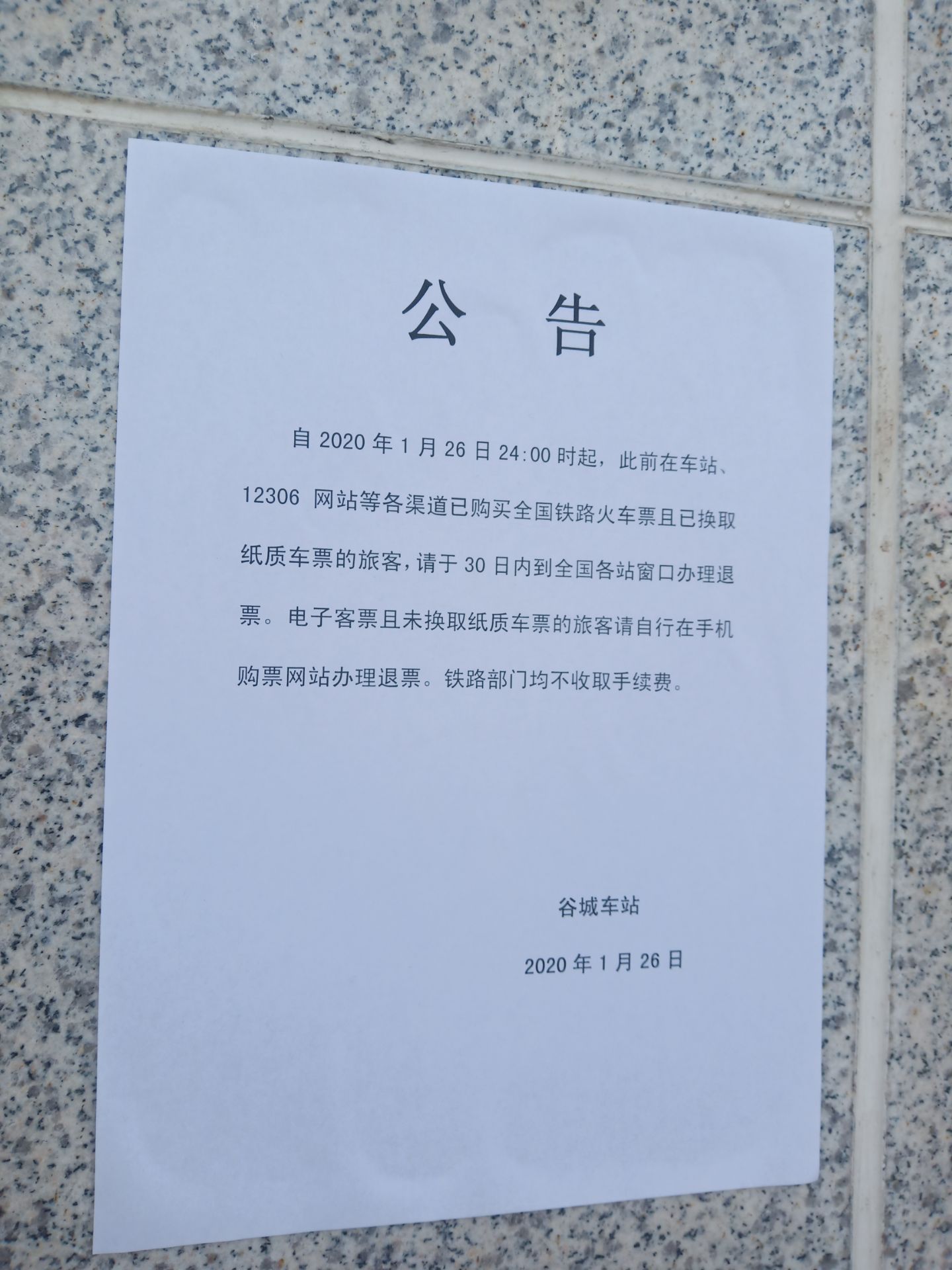 按最新的政策,你在谷城站重新开放之后的30日之内去谷城站退票即可,免收退票费全额退款。近期安心在家即可,退票之事不急。
