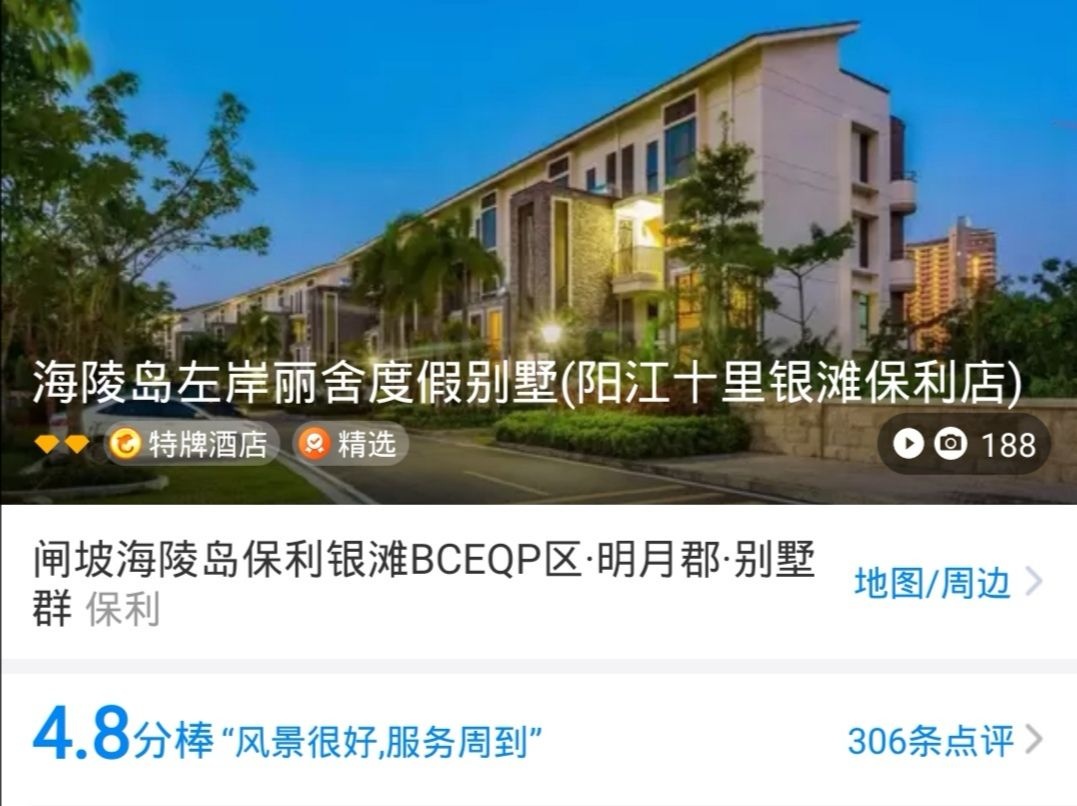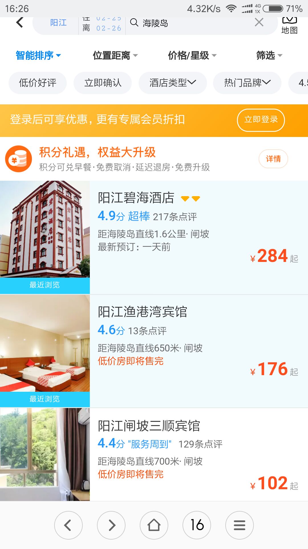 携程首页~酒店~当前位置(阳江)~关键字(海陵岛)~选择入住/离店日期~查询~选择所需~按提示操作预订