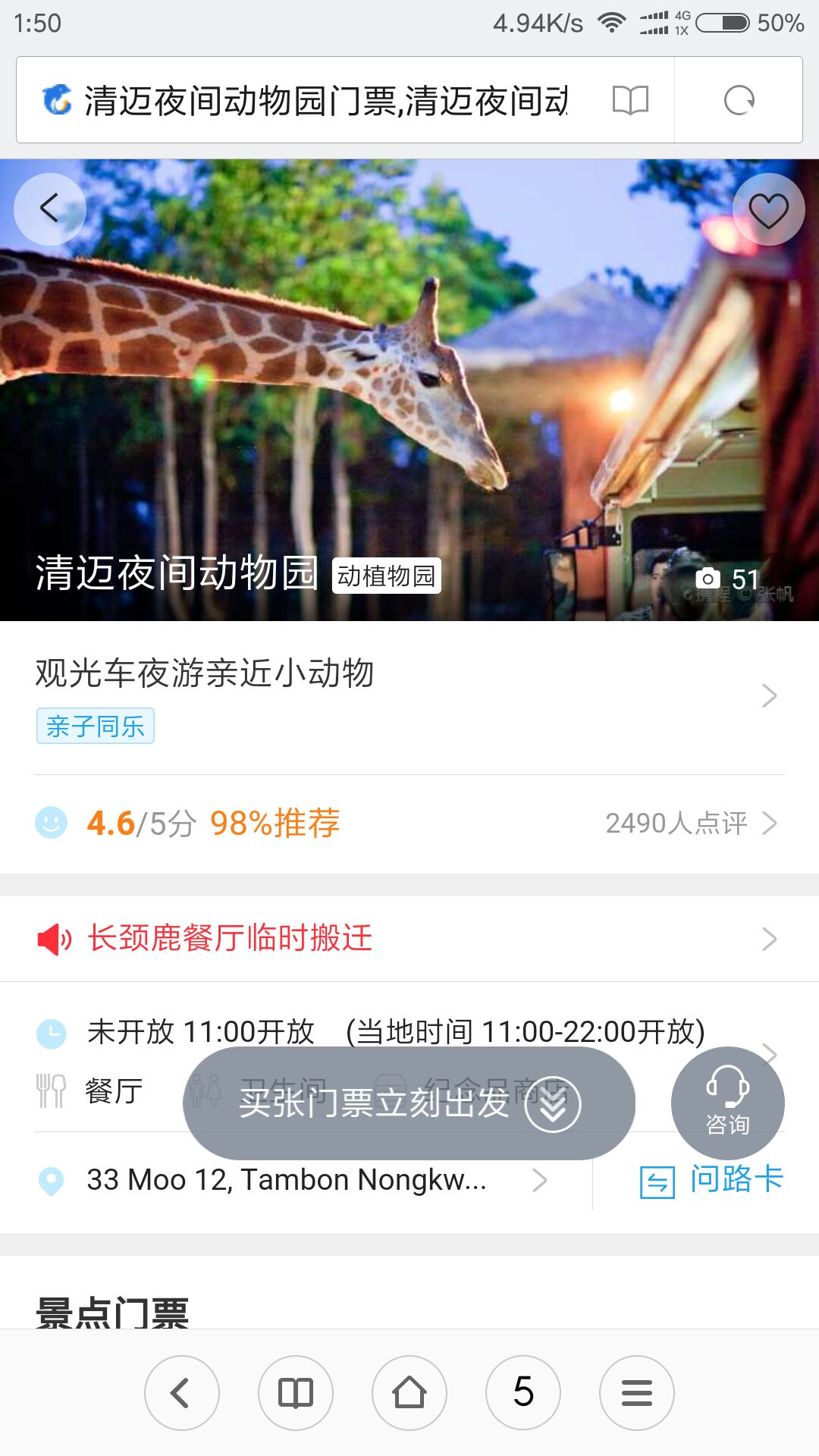 Night Safari(夜场):成人800泰铢,儿童400泰铢,