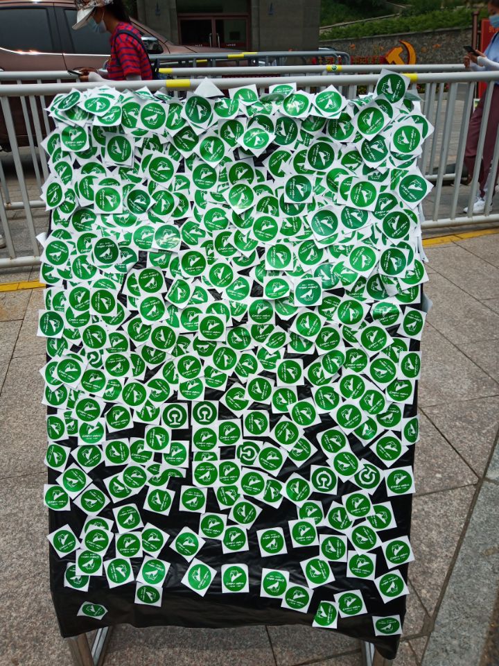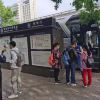 一出地铁口就看到穿着赞巴士蓝色马甲的工作人员举着蓝色的赞巴士牌子在等待了
