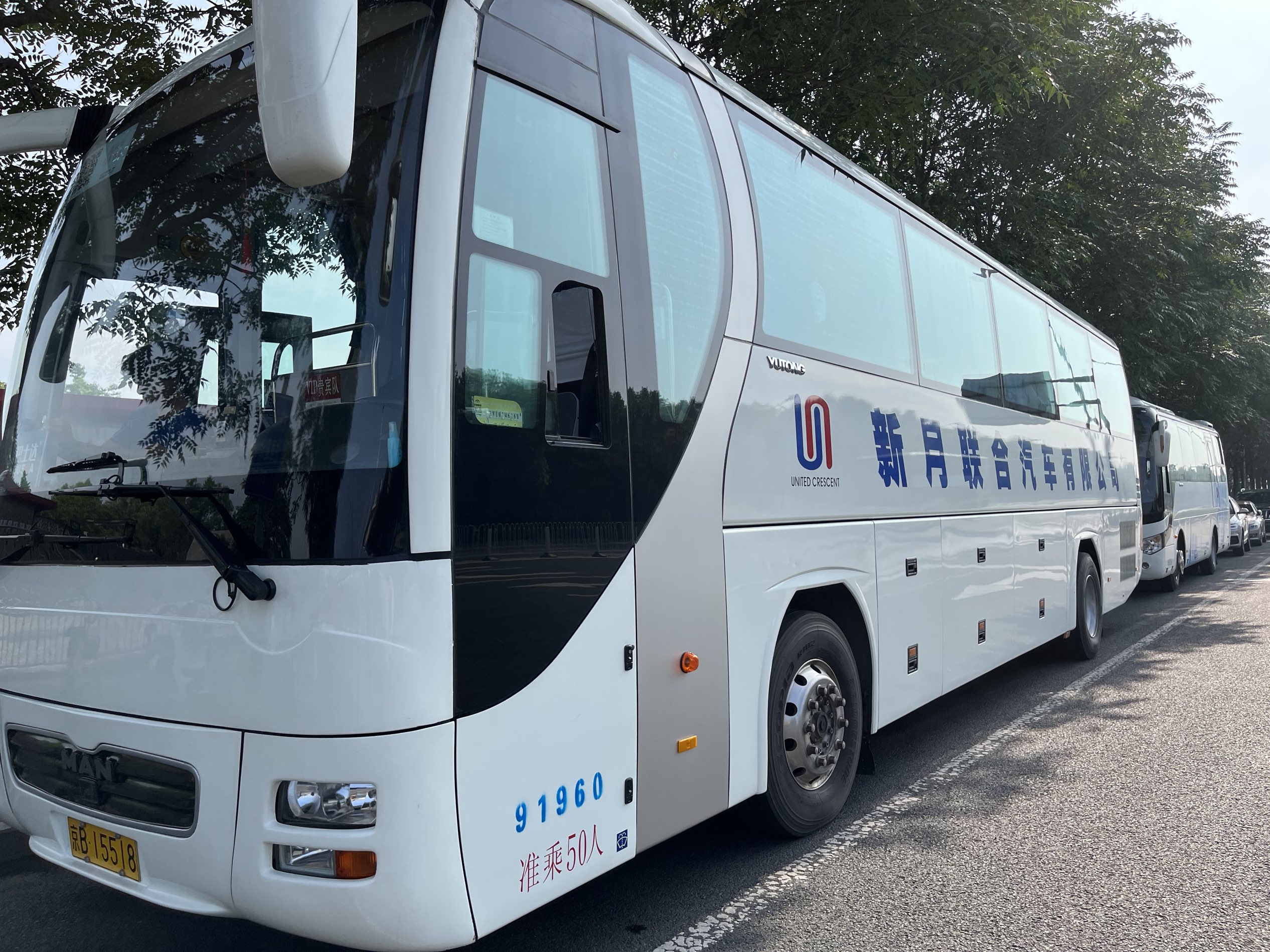 一路上跟着导游的指引很顺利的坐上了巴士,车子很新,都是首汽的车子