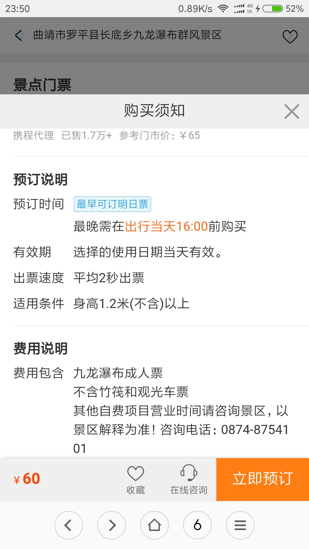 景区游览顺序推荐进门先欣赏迎宾瀑,再经漾月桥沿步行栈道到缆车下站乘缆车上山到观景台看瀑布群全景,景区不大,半天时间就能游览完。