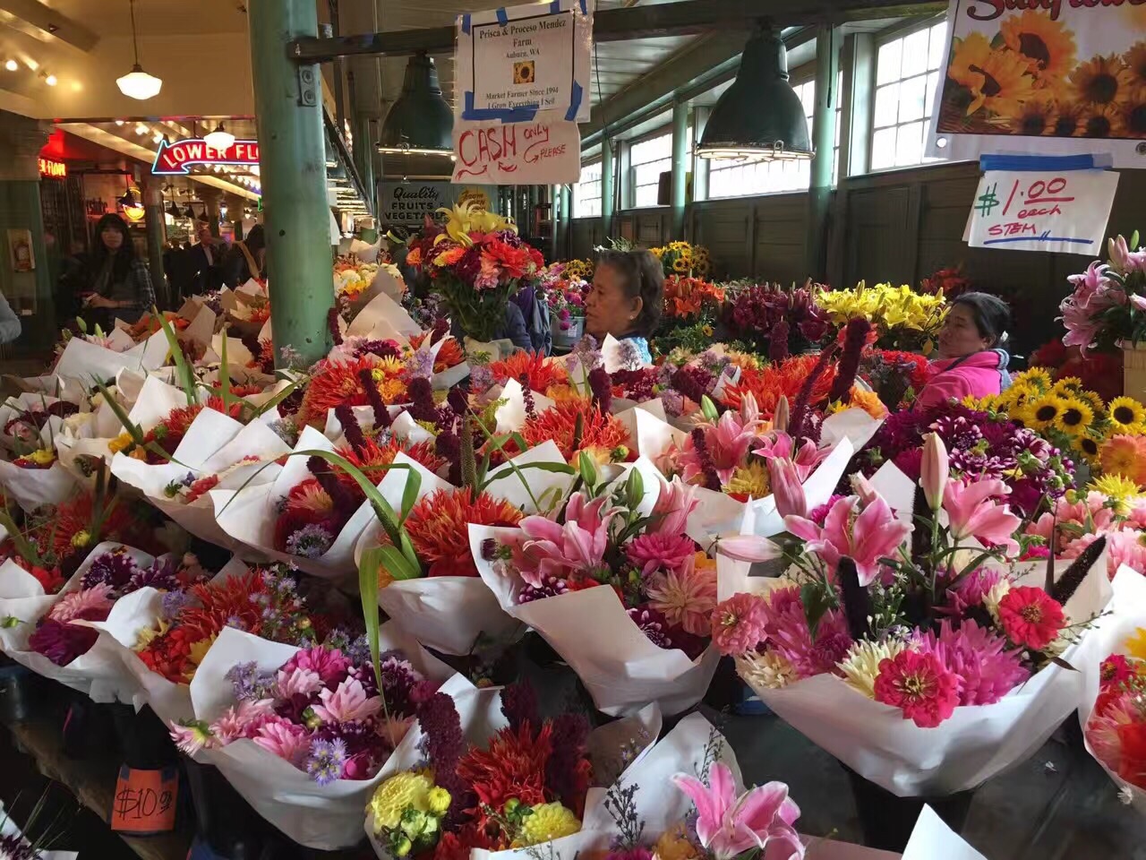 我们是从温哥华报了一个西雅图的一日游的团,派克市场是路线规划之一。市场很出名,但是对于游客来说,买了什么也并不方便带回去,逛一下主要是感受一下市场的气氛,作为一个打卡的作用。相比较而言,当然是市场对面的全球第一家星巴克更吸引我们。但是这家咖啡店门口常年排着长队,我们是跟团的时间有限,也就只能拍照留念了。