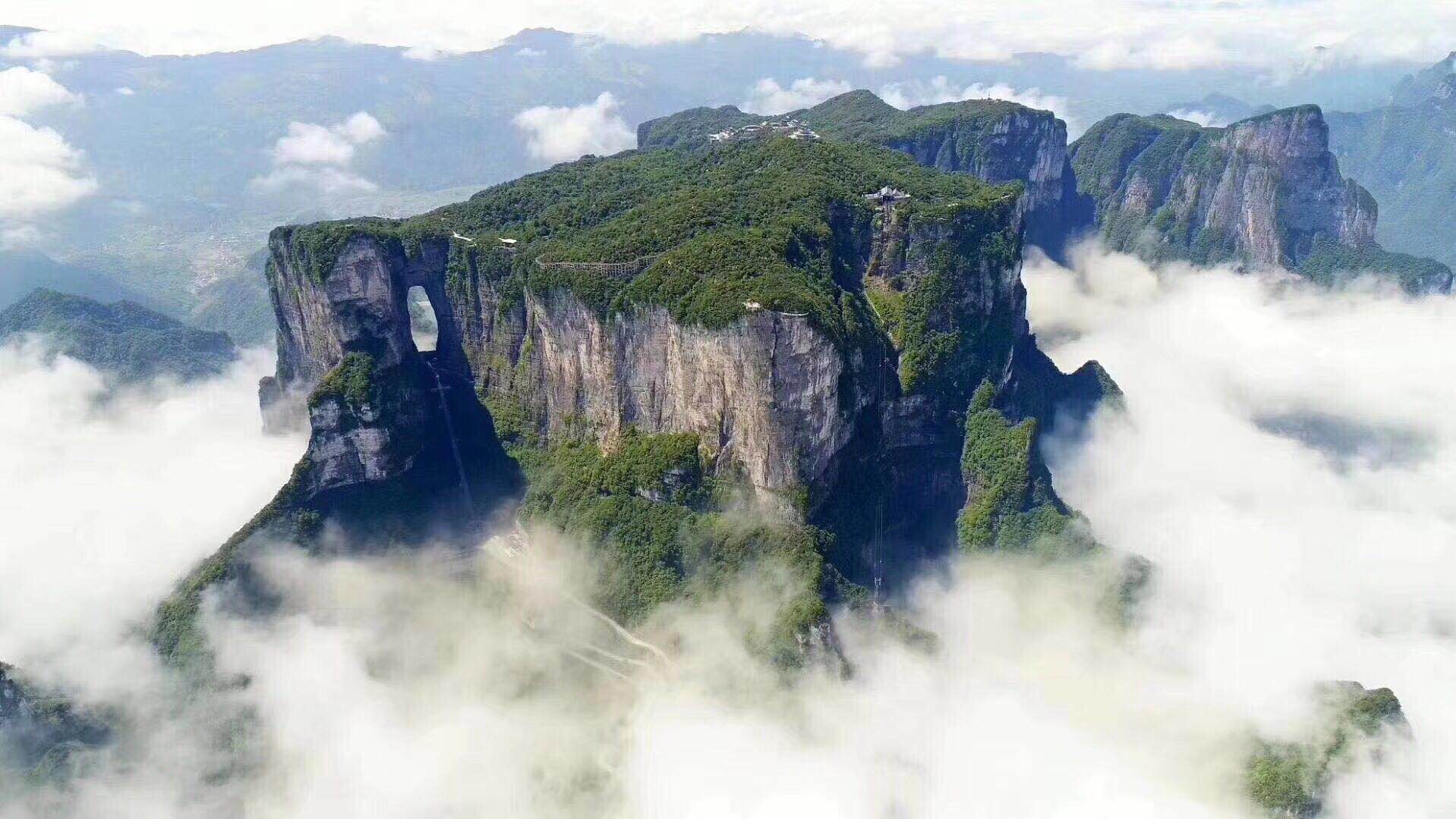 第三天:前往张家界天门山国家森林公园索道下站,坐“亚洲第一长索道”上张家界天门山游览天门山国家森林公园(以玻璃栈道及天门洞闻名)。