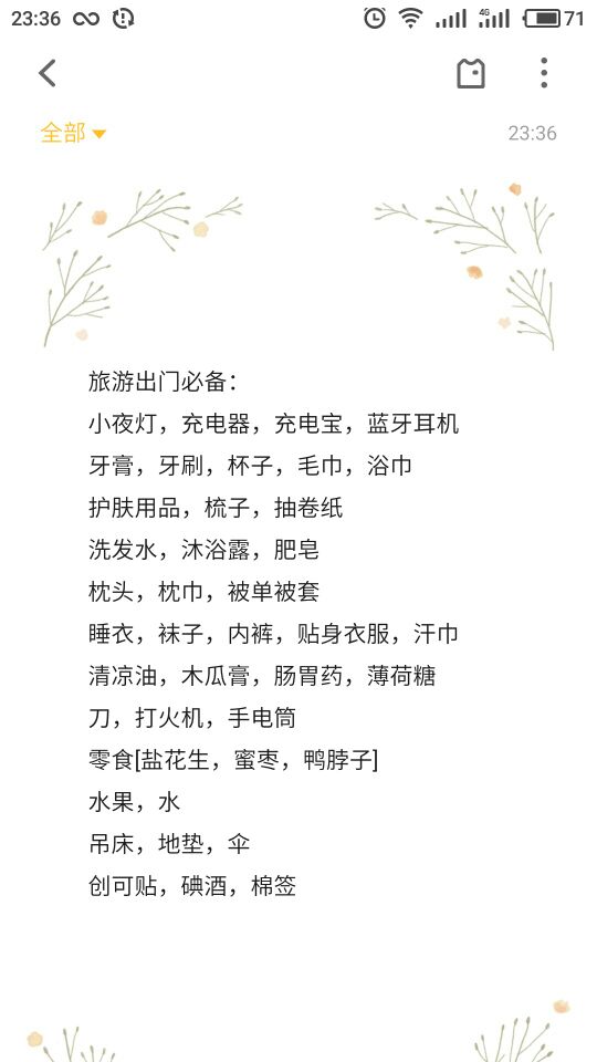 5 食品,因为除去旅游肯定要坐车,带上点食物对防止晕车也有帮助,说到这里你就想到应该带点晕车药了吧~~(不要带太多,不然是累赘)