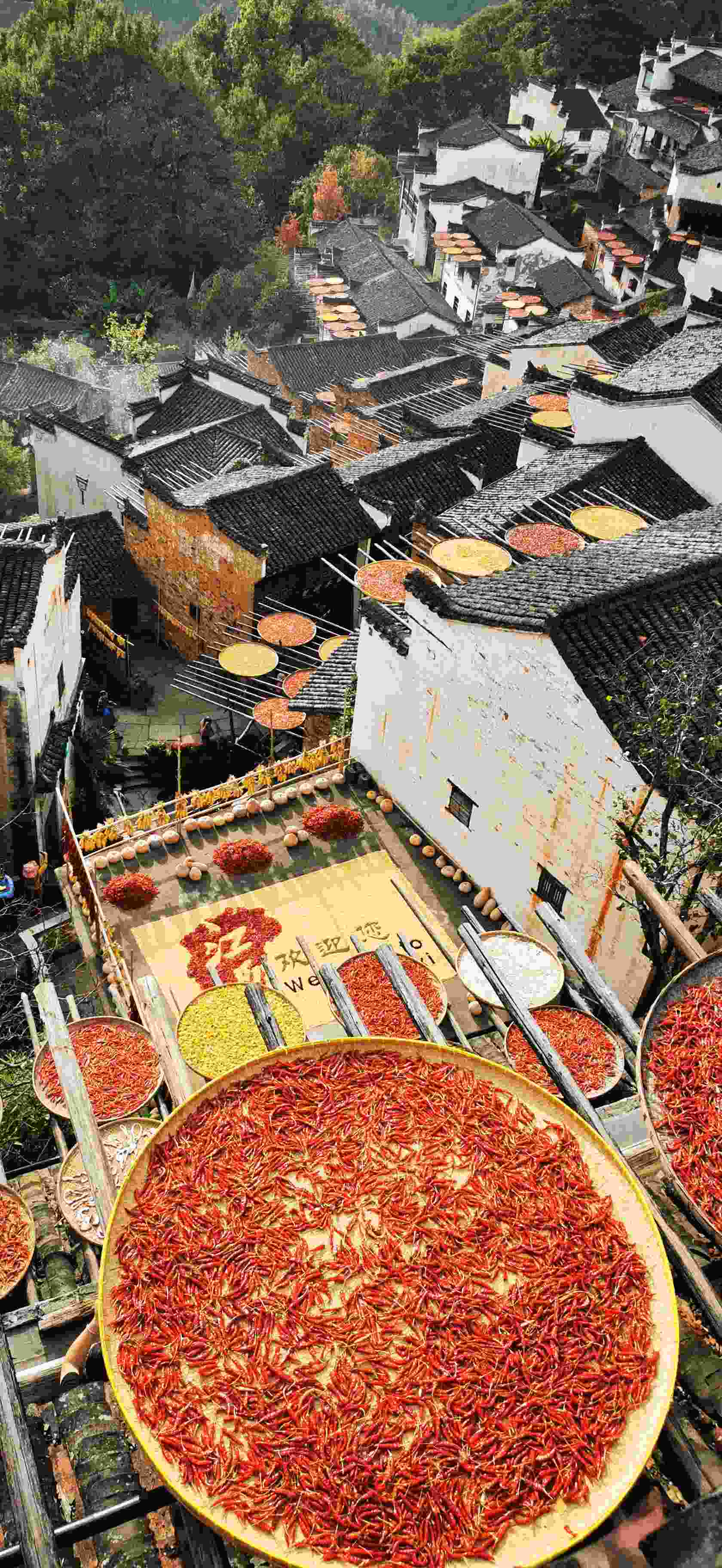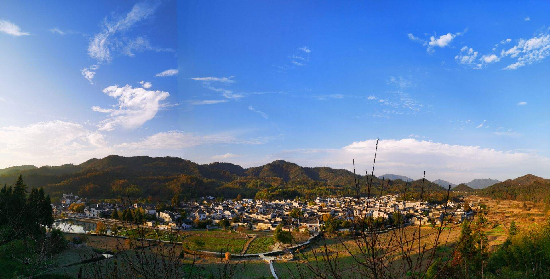 建议宏村。三处都去过,簧岭春看油菜花梯田、初秋看晒秋,目前收割完毕没有金色梯田可看了……