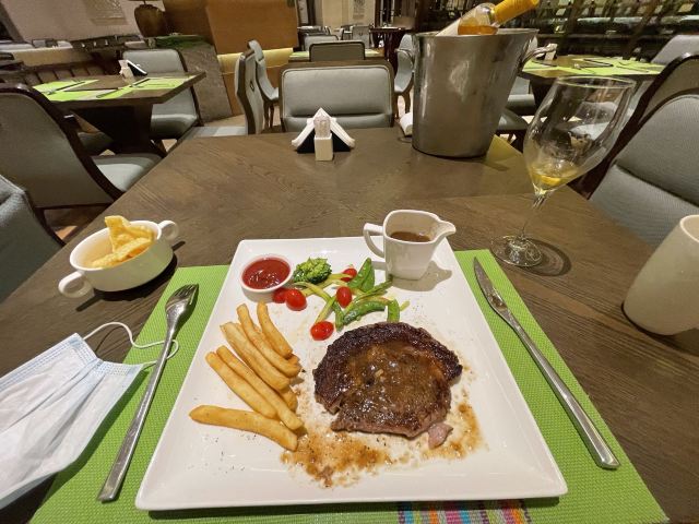 淡季去的西餐厅人很少我算第二桌吧,很少吃西餐的我选择了牛排也不知道要几成熟妹子给了不错的建议,选了合适的冰镇白葡萄酒爽口,比中餐厅好多了。价格你们猜猜不要问,吃完整个人都安逸。