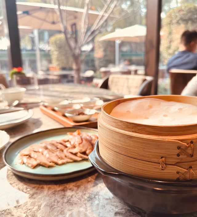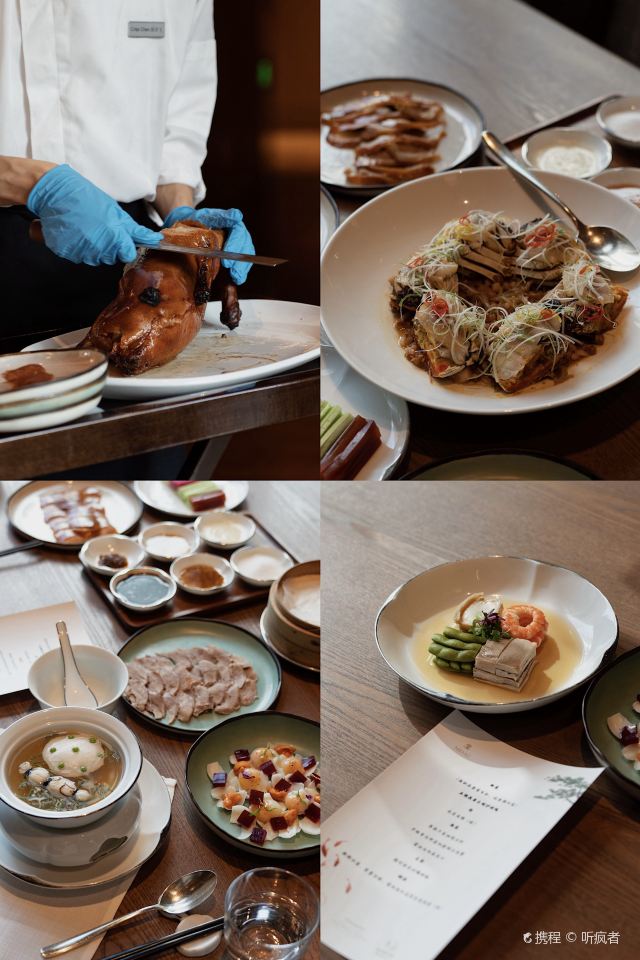 周四午餐,人不多,和太太一起两人餐+烤鸭,餐厅优点:环境不错,服务也好。缺点:菜品实在敷衍。点半只烤鸭,是剩下的半只,可以看到边缘明显肉质氧化,绝对非当日现烤,鸭皮口感就更明显是隔夜再加热产物。油爆大虾有5-6只肉质发绵,不是活虾。这价位,请至少保证食材新鲜,只能说很不满意。