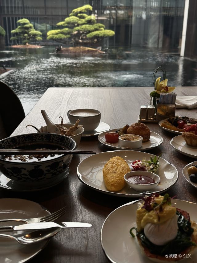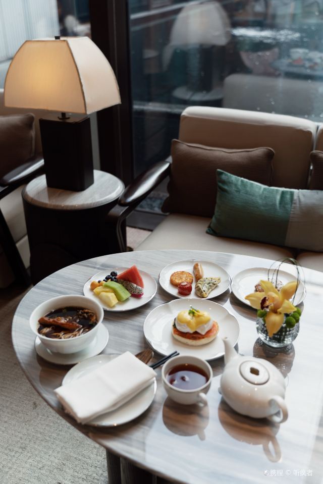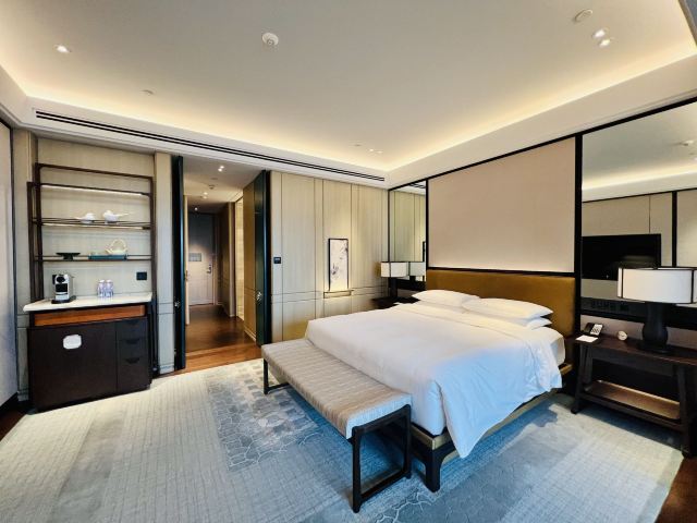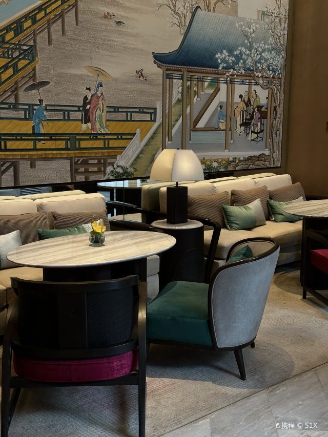 下榻苏柏最惊艳我的设计其实是悦厅,沿袭古时苏州宅邸中女厅的概念,装点着手绘壁画,配色明媚,完美诠释了苏式宅邸的雅致与当代艺术的灵动. 现在正是吃蟹的好时节,品味一番蟹宴下午茶;丰腴的蟹粉与绵润的秃黄油,被注入泡芙、挞壳等西式甜点的框架中,入口的瞬间,打破了下午茶非甜即咸的传统想象!这份猎奇的口感背后,是令人惊叹的巧思,让我惊艳的是蟹粉gelato! 苏州柏悦并未流于江南园林的形,而是取其风骨,用高阔的尺度、克制的线条和沉稳的材质肌理,构筑出一方气势恢宏的当代府邸. 这份大气在推开房门后,化作另一重姑苏韵味,丝质屏风描绘着淡雅山水,将休憩空间巧妙隔断,含蓄而雅致;喜欢洗手间内天然纹理的玉石洗手台,温润质感奢境于细节.难忘的是安坐在景观房窗前,观赏了金鸡湖畔的摩天轮日落. 第二天的动力都来自于早起后在一楼西洲轩点的红汤爆鱼面,一秒回魂! #苏州酒店推荐 #苏州柏悦酒店 #苏州下午茶 #苏州旅行