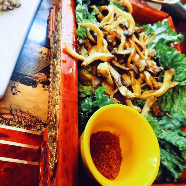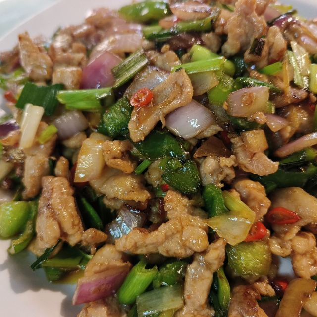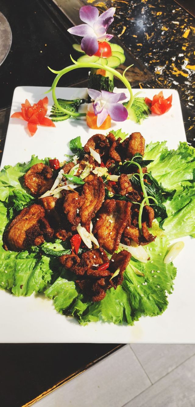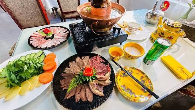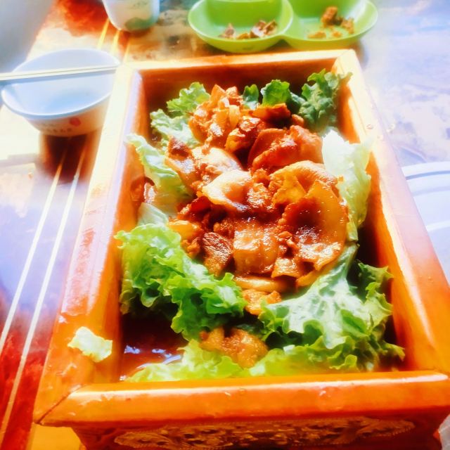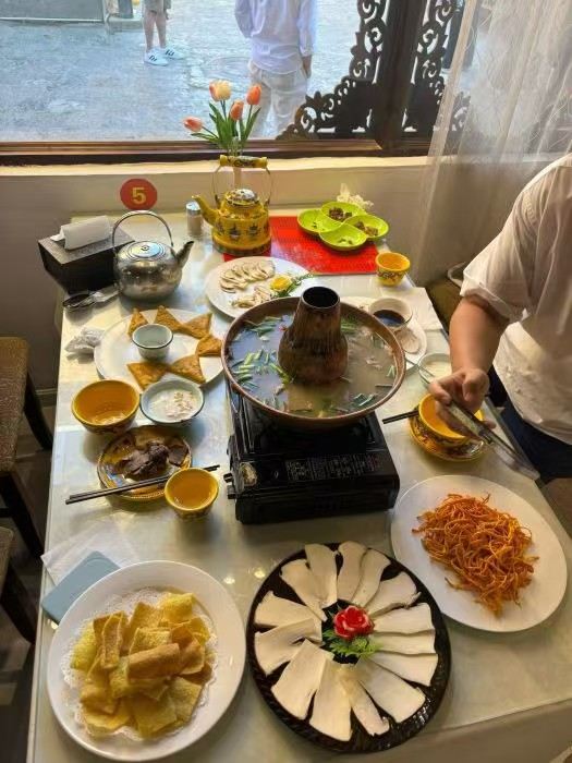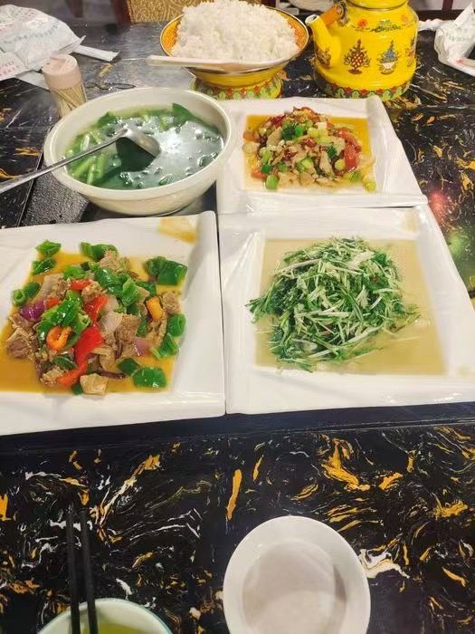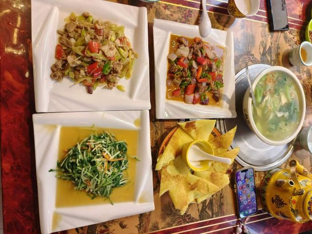 到达香格里拉以后,我们就去藏家写真馆拍写真,拍完写真后我们又回到了独克宗古城,在古城里面游荡了好久,饥肠辘辘的我们在网上找到了这家饭馆,真的很不错。 炒野生菌很好吃,原本以为野生菌吃得已经够多了,但是到达这家饭馆以后就发现,原来还有好多的美食被我们忽略了。 牦牛肉火锅很不错,浓香的牦牛肉汤汁,滚烫的汤汁进入我们的胃里,感觉很暖和,虽然说现在是夏天,但是香格里拉还是很冷嘞。牦牛肉火锅就很适合。 小炒肉很鲜嫩,很不错的饭菜。对面就有一家旅馆🏩,梅里花园,吃和住都一次性在一条街上解决了,很不错。