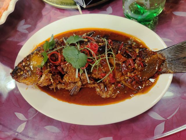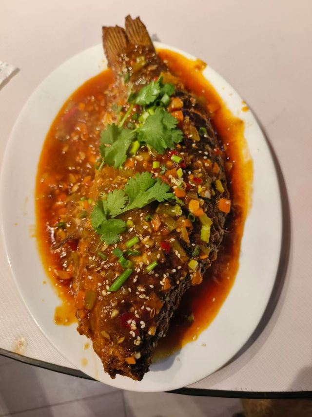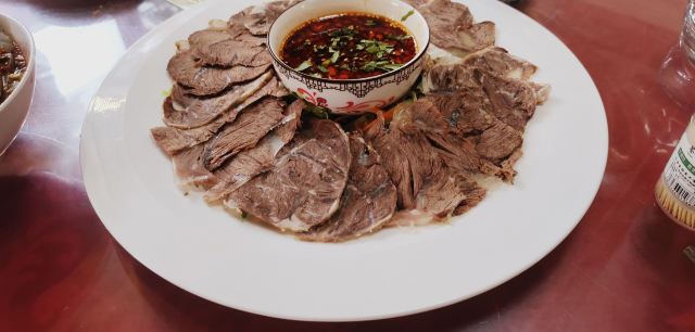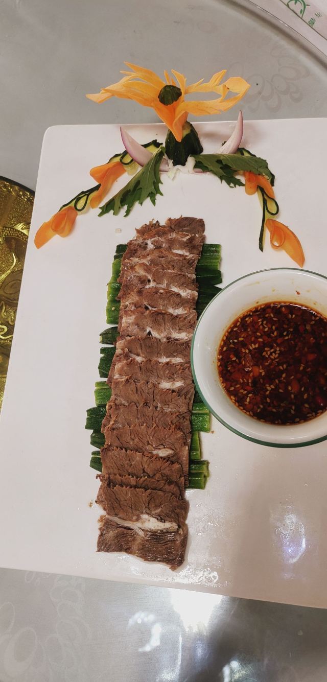 YoYo_9Q3G3W1R在这场充满欢声笑语的旅途中无意发现了这家宝藏店铺,在我们饥肠辘辘的时候被这家店的香味吸引,我们点了盘肉,每一片肉都透露着烹饪的精准与对食材的尊重,肉质鲜嫩,纹理清晰,仿佛在诉说着它的新鲜与品质。搭配的蘸料色泽红亮,辣椒油的香气与香菜的清新交织,为牛肉增添了一抹不可抗拒的风味。紧接着,一条清蒸鱼映入眼帘,鱼肉的细腻与姜丝、葱末的香气完美融合,酱油的咸鲜恰到好处地提升了鱼的本味。鱼肉的鲜嫩与调料的香气在口中交织,让人回味无穷。这两道菜不仅在视觉上给人以美的享受,更在味觉上带来了极致的体验。无论是牛肉的醇香还是鱼肉的鲜美,都让人感受到中华美食的博大精深。每一口都是对味蕾的一次盛宴,让人在享受美食的同时,也能感受到烹饪者对食物的热爱与匠心。