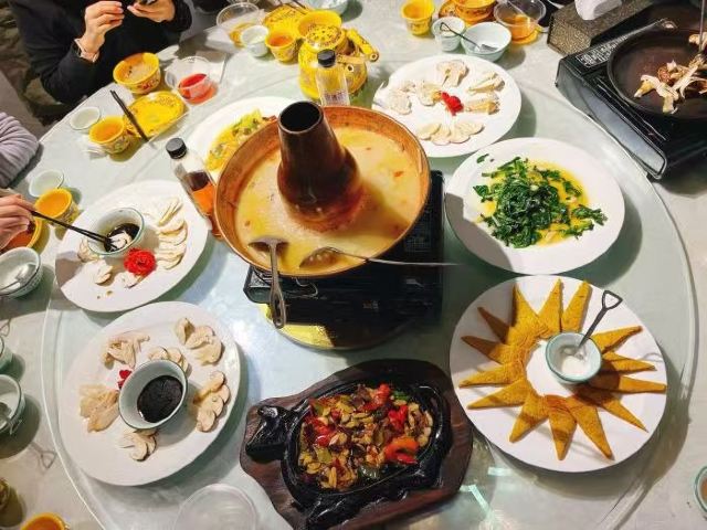 藏香猪肉,铁板牦牛肉,明星松茸土鸡火锅,牦牛肉锅,藏家小炒肉,野生菌小菜汤,青稞饼,酥油茶,独克宗烤鱼,青稞酒,鸡汤,牦牛肉,高原土豆,牦牛肉火锅,松茸土鸡汤,藏家烤肉,红烧茄子,松茸