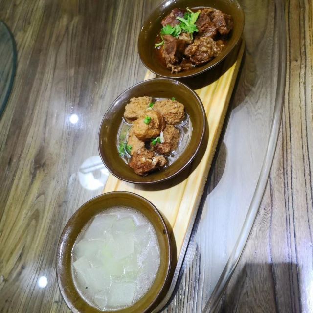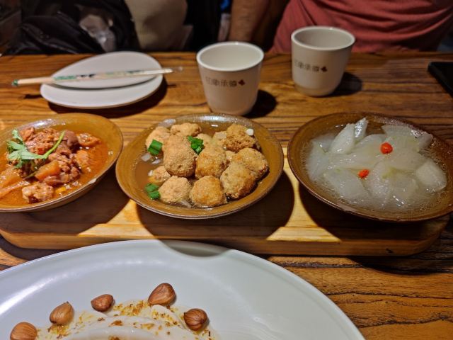 吃了几顿承德的菜,总觉得偏咸又偏油,这家印象承德厨房也不例外。不过,北方的菜量就是比杭州多,点了300来块的菜,7个人居然吃不完。传说中非常好吃的莲藕焖猪蹄不及老承德三样好吃。最受大家喜欢的不是承德的代表菜,居然是一碗青菜豆腐汤。