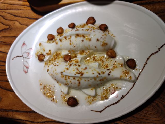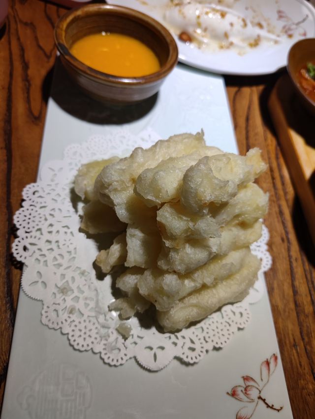 YoYo_4P0W2Q3U[环境]中午过来的,旁边停车得找找。里面桌和桌之间间距还是很大的,比较踏实。菜量很足,价格也还挺实在的 「承德溜肉片」好吃好吃,跟自己想的不完全一样。咸香十足,还带点酸酸的口,有点胡椒味。肉特别嫩 「鲜肉蘑炒肉」这个是意外的好吃,我一个不爱蘑菇的人,这个超嫩 「炸鲜奶露露」第三好吃的是个甜品。和别的地方的外壳不同,这个更酥,里面是鲜奶和露露兑的,所以甜味正合适 「黑腐竹」黑腐竹不是一小碗是一大砂锅,很实在。不过不全是黑腐竹,大部分是普通的。口味是有点偏辣的。 「老承德三样」老三样就是一个豆腐做的球,一个炖牛肉,一个冬瓜。相比另几个没那么出彩,毕竟是承德特色还是要尝尝