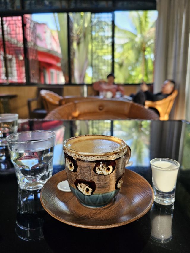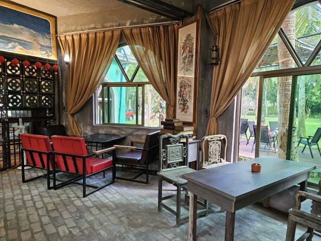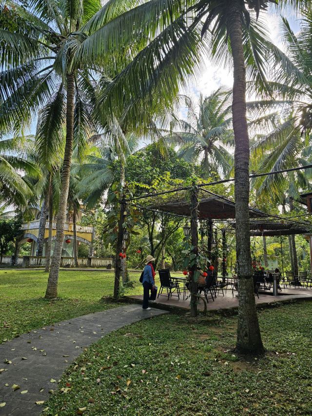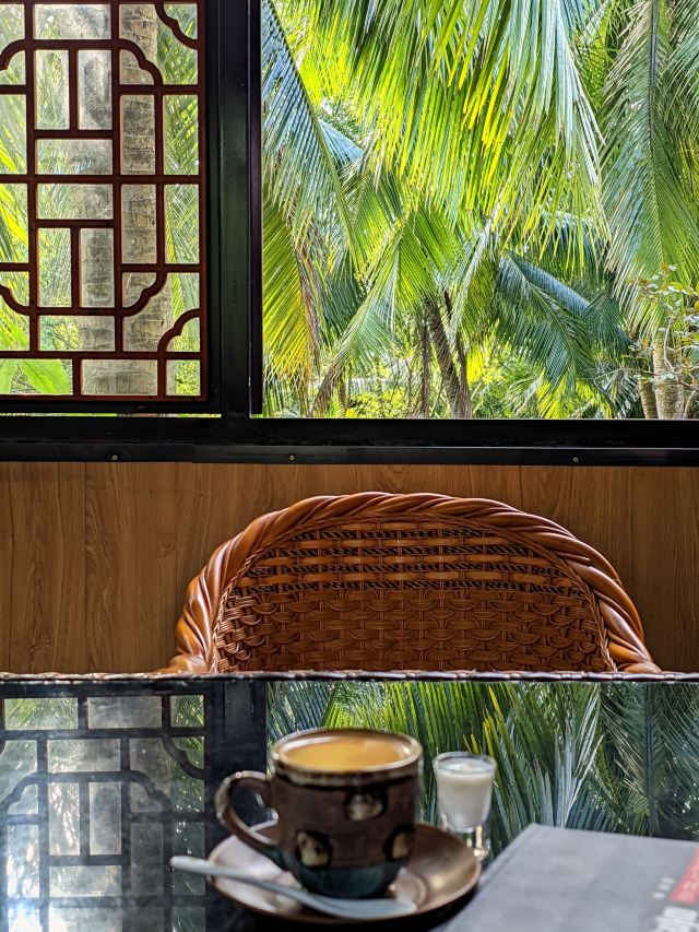旅游度假村子里竟然藏着一家充满了南洋风情的宝藏咖啡馆,存在的时间有百年。咖啡馆门前一片绿绿的草坪上种满棕榈树,阳光投射进来洒落在身上。进入咖啡馆,仿佛穿越时空来到几十年前的南洋。老板热情洋溢,咖啡个人不太喜欢这个口感。虽价格偏高,但坐在复古绿意的窗前,绝对会感叹人间值得。