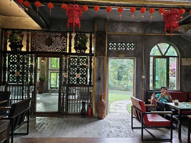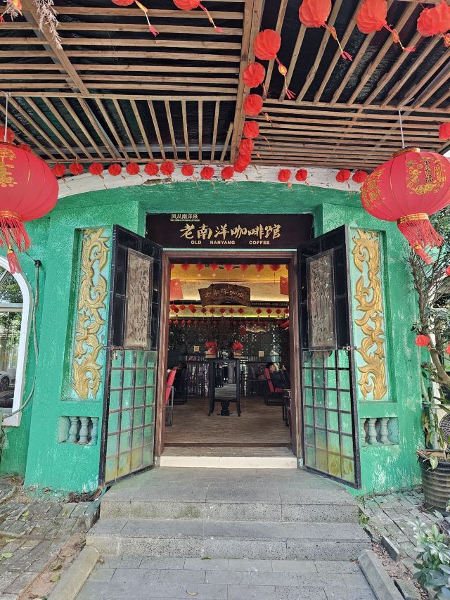 村子里竟然藏着一家充满了南洋风情的宝藏咖啡馆,存在的时间有百年。咖啡馆门前一片绿绿的草坪上种满棕榈树,阳光投射进来洒落在身上。进入咖啡馆,仿佛穿越时空来到几十年前的南洋。老板热情洋溢,咖啡个人不太喜欢这个口感。虽价格偏高,但坐在复古绿意的窗前,绝对会感叹人间值得。