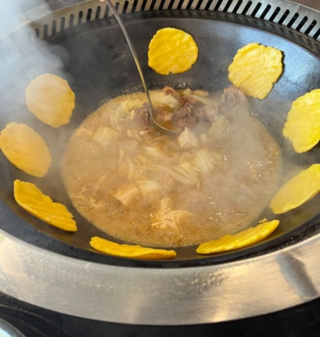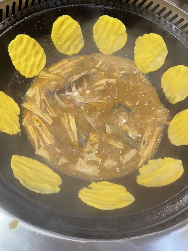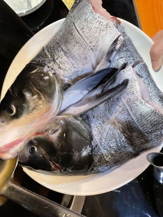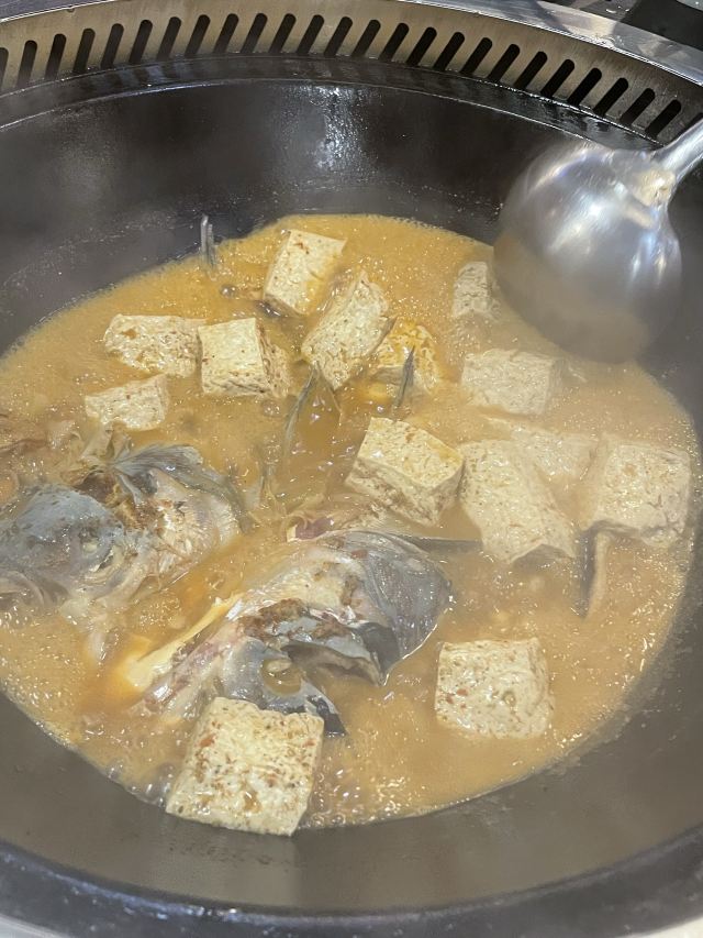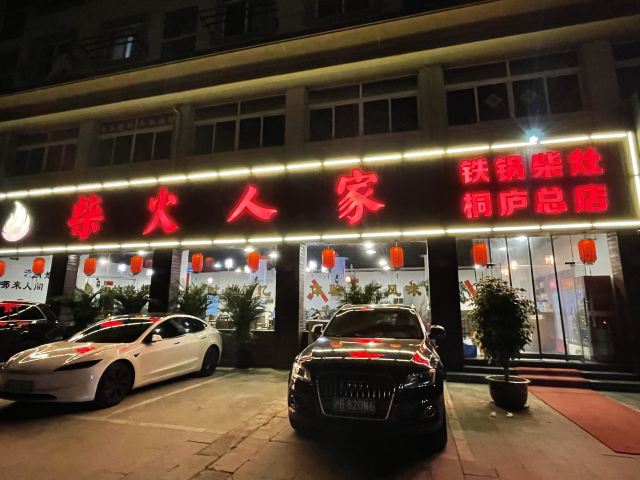 柴火人家(桐庐总店) 门口可以免费停车,就是铁锅炖啦~微辣也挺辣的,味道偏咸,吃好口干。 服务挺好的,服务是加分项。 柴火包头鱼 48元一斤,说一条是3.8斤 土鸡 柴火土鸡88元一斤,说是一斤 豆腐 老豆腐16元一份,还不错 玉米饼 20元一份,8张饼,比上海吃类似店要薄 菠菜 18元 年糕 12元 腐竹 12元 拍黄瓜 15元 千岛湖啤酒 10元
