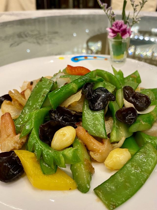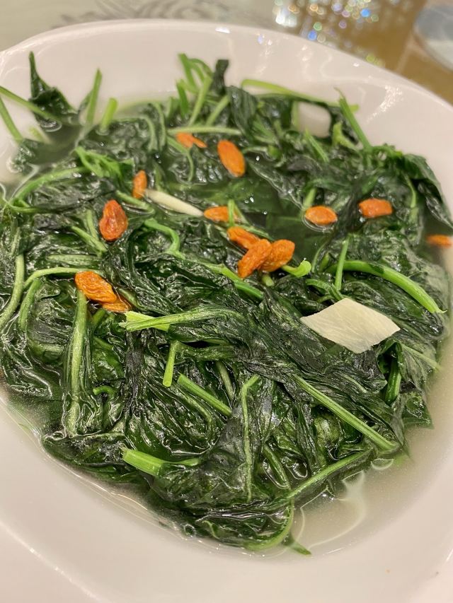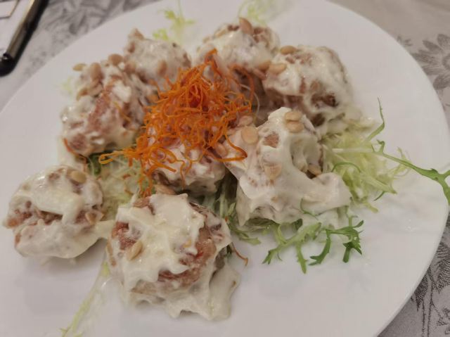 水晶鲜虾饺,香煎牛仔骨,酱汁蒸凤爪,奶油南瓜汤,菜心粒拆鱼猪肝粥,沙湾水牛奶挞,澳洲牛肋条,芝士蛋糕,肉眼牛扒