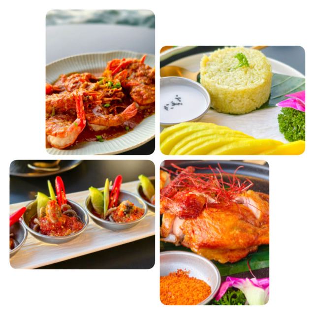 香茅古法烤鸡半只,柠檬蒜香胡椒虾,酸辣鸡爪,虎掌菌烤猪颈肉,香茅豆腐,西贡芒果纸米卷