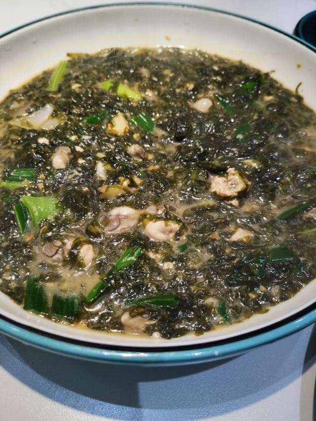 一线城市的价格啊,是因为来的游客太多了嘛~俩人吃四百多。 紫菜汤太咸了,都吃不出紫菜本身的香味了。 白灼鱿鱼很新鲜但是处理的不够精细,中间的骨头都不去掉,吃起来还得吐骨头有点烦 海螺片里的海螺很大片吃着很爽。 东海黄鱼没什么亮点,还有点油。 小螃蟹配糯米饭真的很香,料也很足,虽然等了挺久的,就是两个人吃有点多,会剩下。