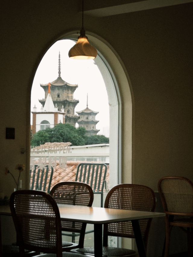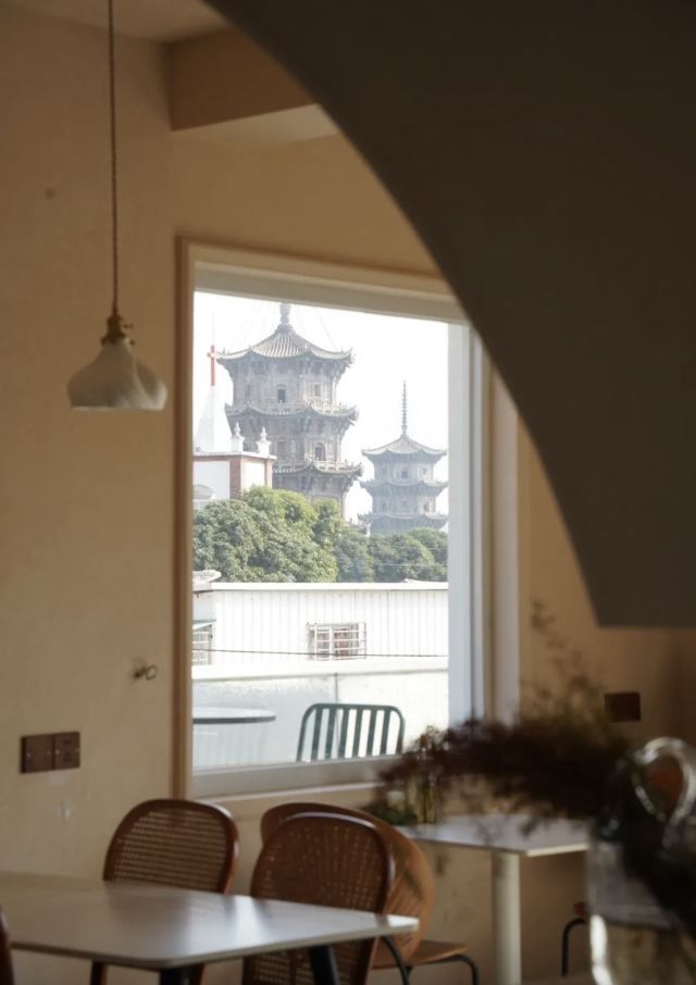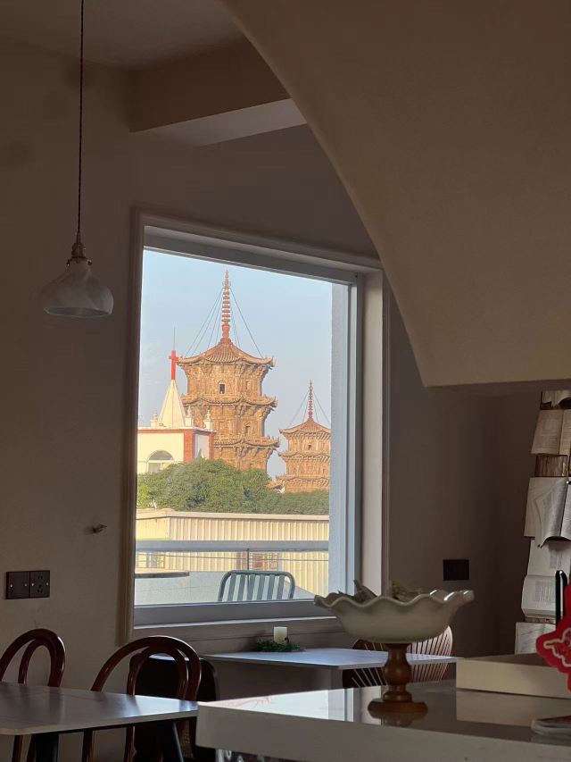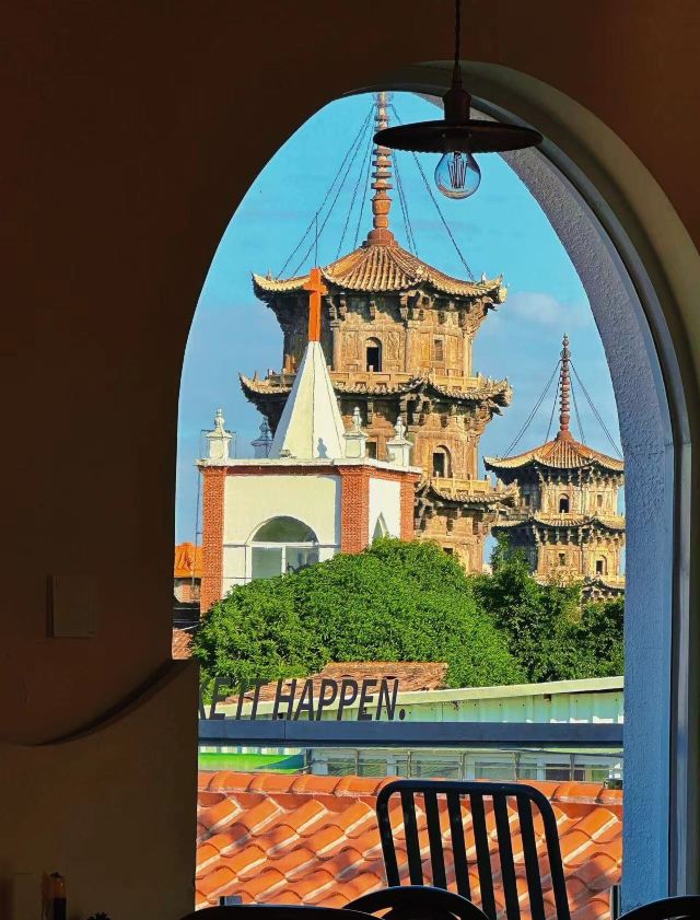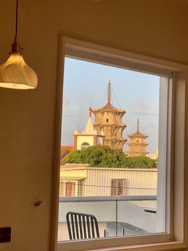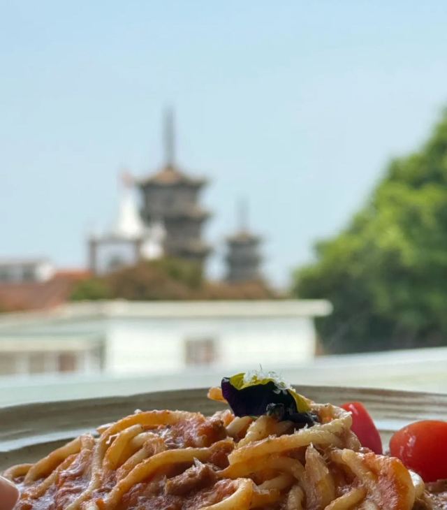 民宿楼上一家可以俯瞰东西塔跟教堂的绝美餐厅全天候营业,不仅有正餐也有下午茶有室内的座位区也有天台的座位区如果嫌外面太热闹,在这里坐上一天简直不要太惬意拍照也是分分钟出片,各种角度跟东西双塔合影,是小众出片打卡地!