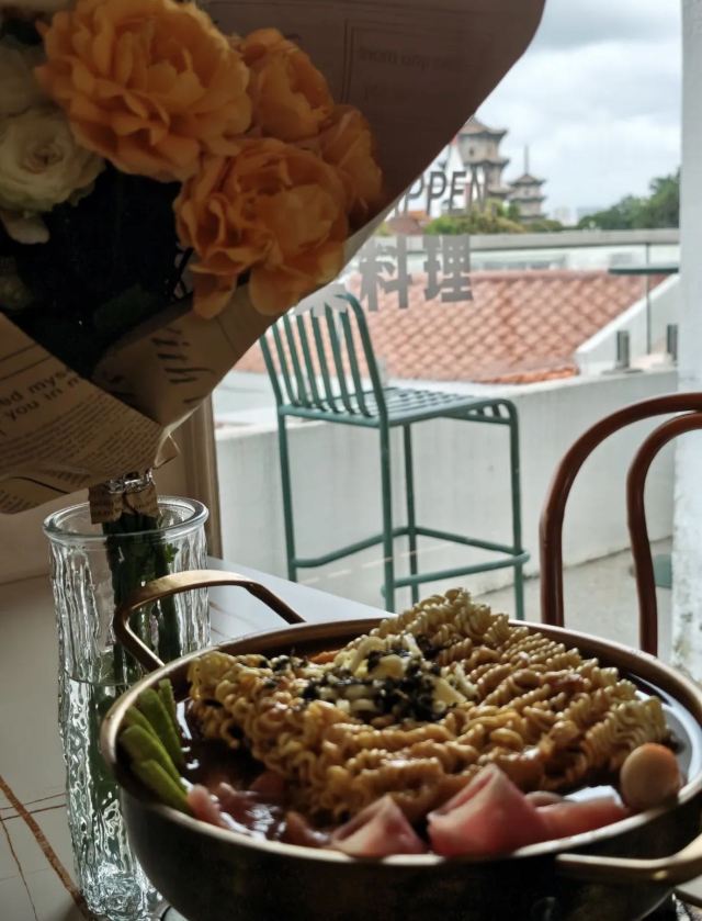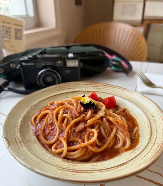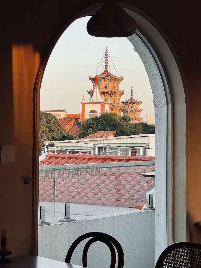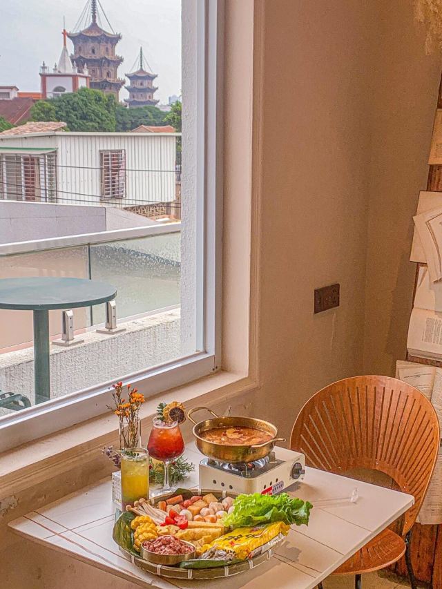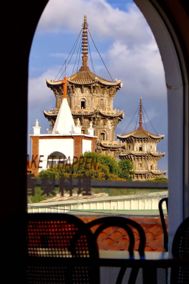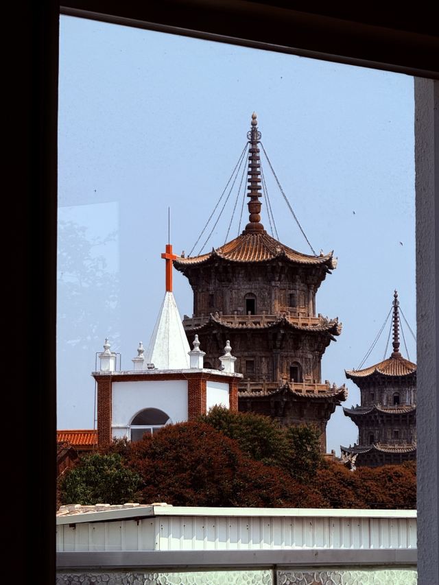 民宿楼上一家可以俯瞰东西塔跟教堂的绝美餐厅全天候营业,不仅有正餐也有下午茶有室内的座位区也有天台的座位区如果嫌外面太热闹,在这里坐上一天简直不要太惬意拍照也是分分钟出片,各种角度跟东西双塔合影,是小众出片打卡地!