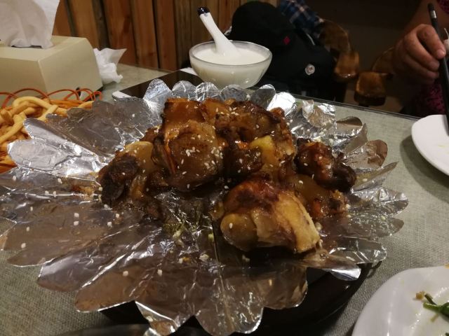 网红蒙餐厅。正宗的奶茶,装修完全的蒙古风格。最推荐的是羊棒骨鲜嫩多汁,味道超级棒。
