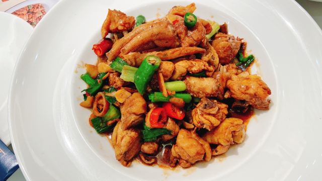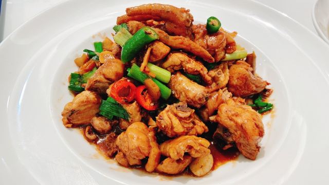 脆皮乳鸽,蛋黄鸡中翅,家烧东海小黄鱼,招牌家烧牛蛙,油炸土豆片,菌菇豆腐煲,柠檬鱼,芝士荔枝虾球,酸萝卜炒牛肉,招牌醋炒鸡