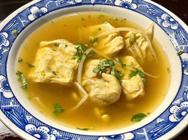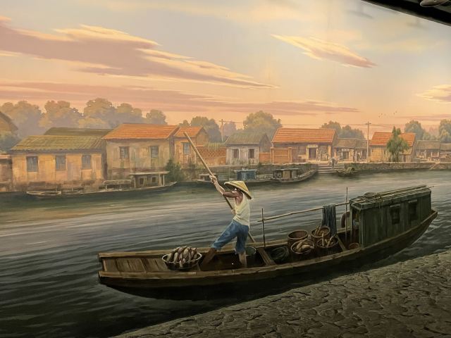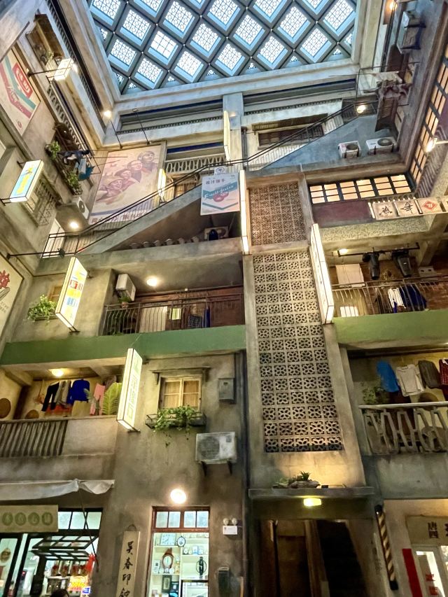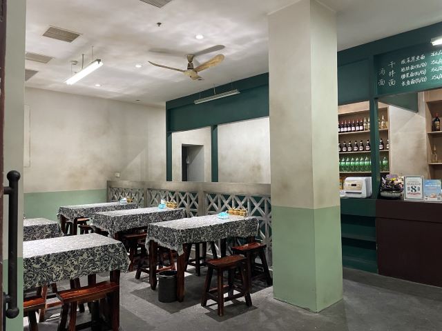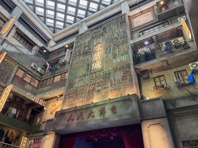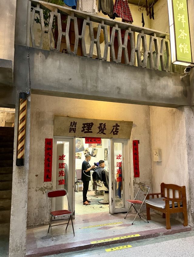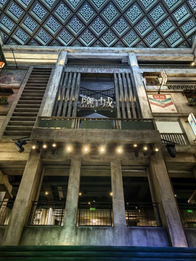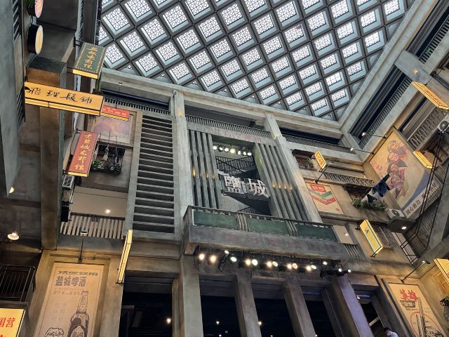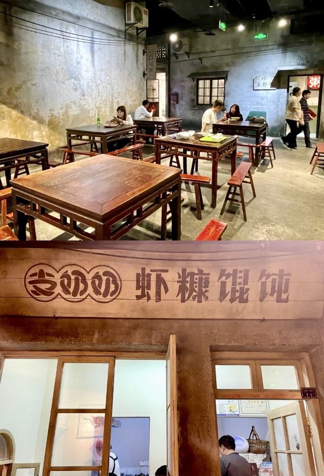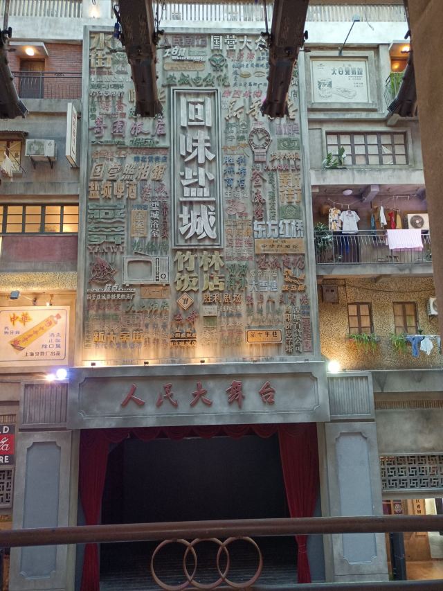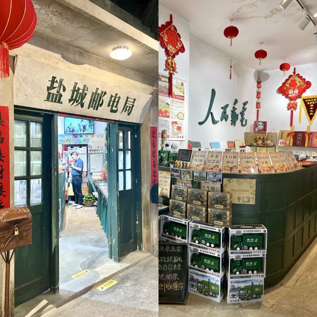 没想到几十年前吃过的虾糠馄饨,还有 麻鸭、腐乳凉粉、鸡汁豆腐、鲜肉/豆沙梅花糕、金钢脐(上海叫老虎脚爪),竟然在盐城的竹林大饭店一次性吃全了。 当然这也只是冰山一角,里面吃的实在太多了。 竹林大饭店在盐城老城区的市中心,外型是一栋很现代化的大楼,里面却是原汁原味的老盐城场景,还原了那个年代的邮局、银行、布店、照相馆、剃头店、小人书摊、渔村等店铺,充满了生活气息和情趣。 特别让人意外的是里面人流如织,而且大部分是年轻人。