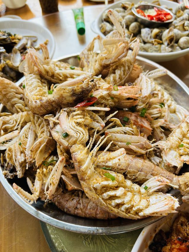 携程推荐的,味道非常棒,海鲜都非常鲜美很好吃😋,图一沙丁鱼香炸,老板店特色,图二黄鲷鱼红烧很鲜嫩,皮皮虾非常好吃,是我吃过最好吃的皮皮虾,花蟹姜葱炒很鲜甜,鱿鱼香煎,非常香,鱿鱼季节白灼也要原味吃鲜味,非常奈斯哈,总之老板又帅又好吃,冲就对了,