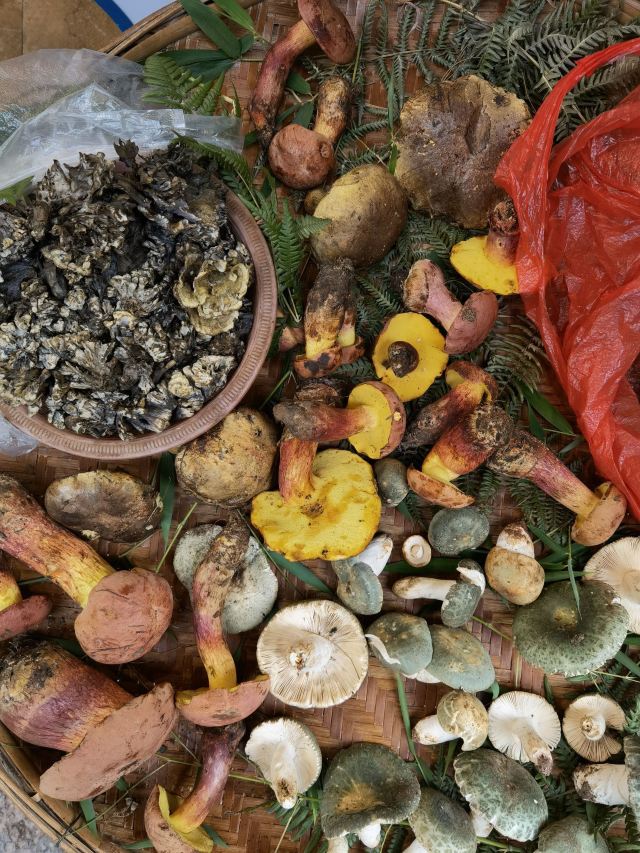 舍得汽锅鸡,草芽炒肉片,木姜子牛肉,炒石榴花,爆炒牛肝菌,五彩豆团