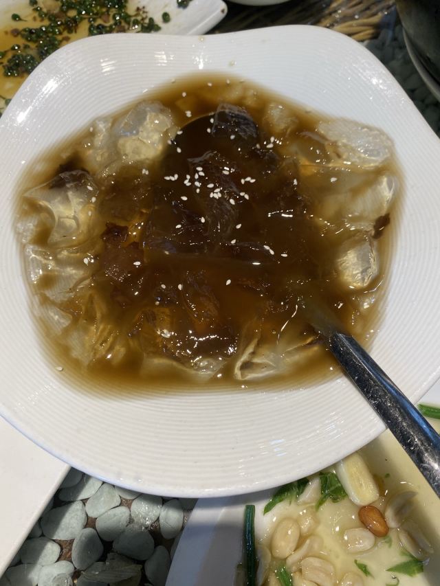 粥一坨晚上来的时候汽锅鸡没有了,点的清汤黄牛肉和莲花白,黄牛肉超多很实在,蘸水味道很神奇,莲花白超好吃,这顿饭出现了俩人抢着吃菜叶子的名场面🙈