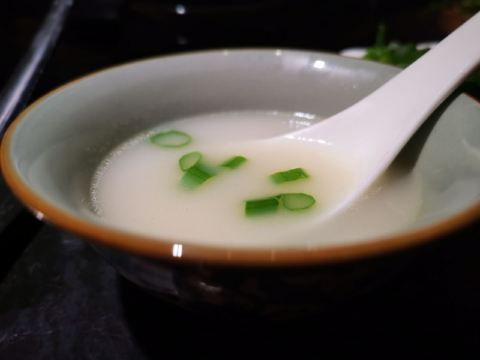 入口是浓浓的由胡椒调和出的醇厚,身上的毛孔瞬间打开,整个人倍觉舒畅。 鸡肉嫩滑,猪肚脆弹。锅内的食材吃的差不多的时候,再下入竹荪、青笋等。竹荪充分吸收了汤汁,浓香满口。青笋清爽解腻,都是猪肚鸡的完美搭配